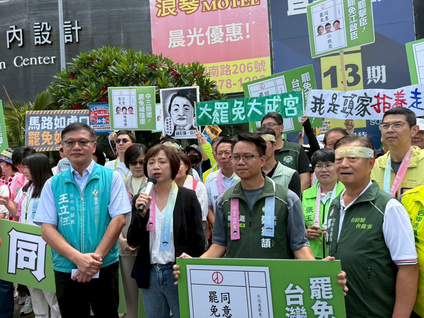 民進黨台中市議會黨團也與罷免團體並肩行動,共22位民進黨籍議員親自到場力挺,與市民一同站上街頭,展現守護民主的決心。立法委員何欣純亦親赴現場聲援,與群眾共同高喊「大罷免的成功」,場面十分熱烈。