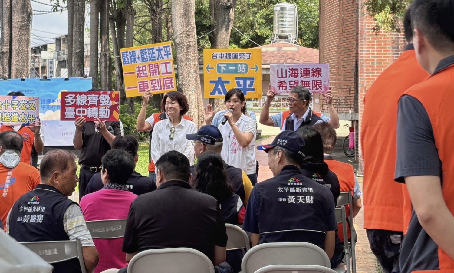 江啟臣副院長表示,大里、太平是臺中市第三、四大行政區,根據市府目前路網規劃,「橘線」會行經大里,「藍線延伸」會經過太平,「紫線」則將串連大里與太平,這三條路線都非常重要,應該加快腳步推動。