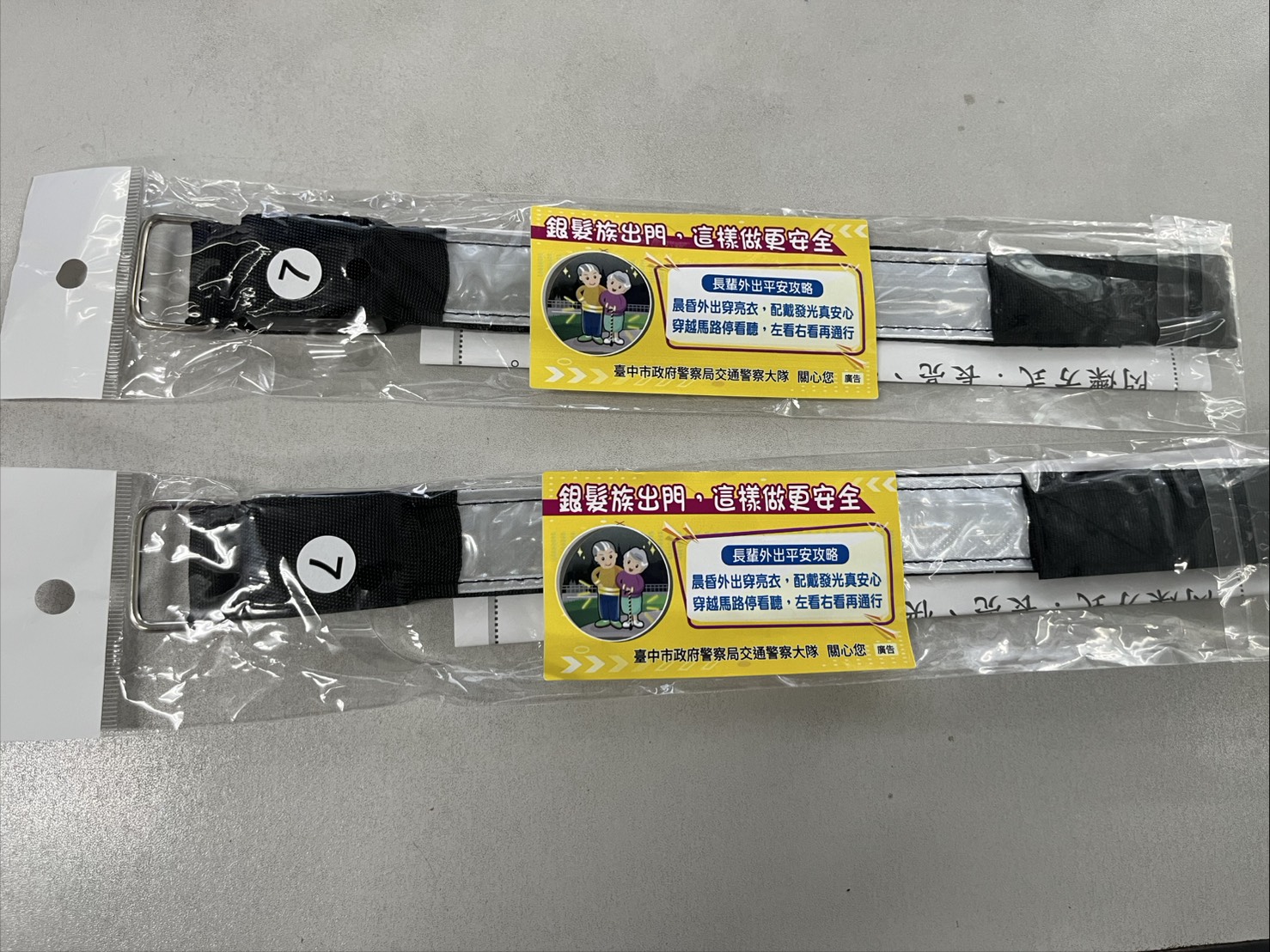 為達宣導效果,東勢分局土牛派出也把握此次活動機會發放臺中市政府警察局交通大隊所提供之宣導品-LED發光臂帶,透過交通宣傳告示牌的解說,讓長者瞭解如何保護自身行的安全,並將相關交通安全常識告知其他長者,進而減少事故發生,共同營造「交通安全、老人平安、全家幸福」的優質交通環境。