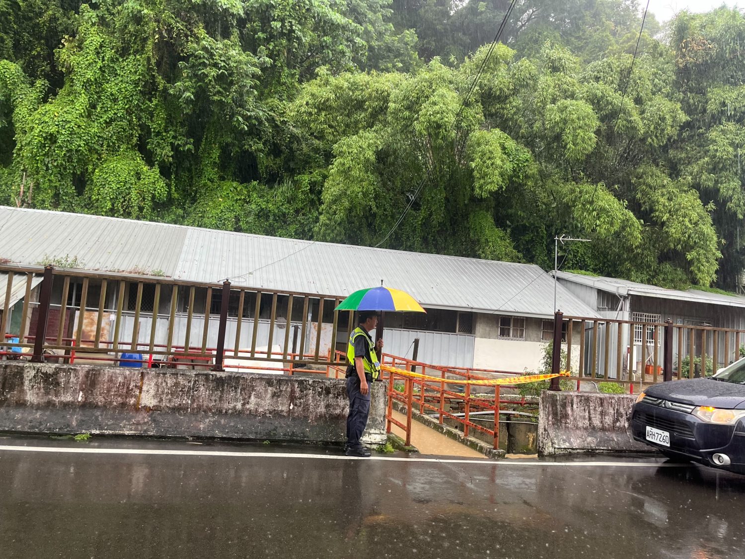 土牛所副所長謝庭龍、警員陳鴻源等人立即駕駛巡邏車前往處置,警方到場後發現民眾住家已遭土石流影響,屋內地板早已泥濘不堪,且民眾住家後方的山坡持續有泥流滑落,因擔心會造成更大的危害,警方通知區公所社會課前來協助,並偕同將住戶撤離至附近避難所安置。