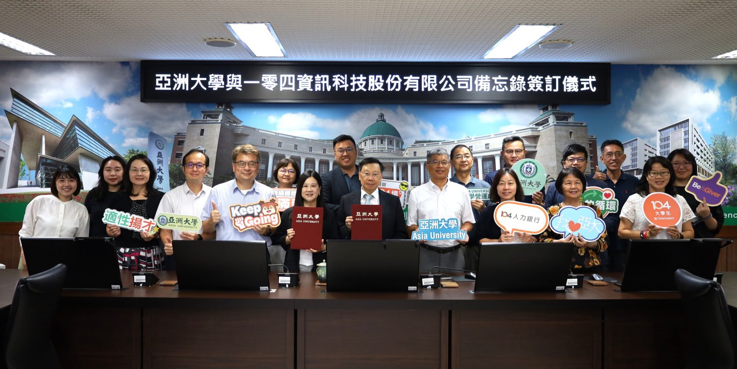 【記者蘇詩鋒台中報導】亞洲大學為培養學生的「就業即戰力」,11日上午由亞大校長蔡進發代表,與104人力銀行集團行銷長暨副總經理張寶玲簽訂合作備忘錄,將在104平台合作設立「亞大求職專區」、並提供「外籍生專區」服務,打造台灣中部的跨域人才培育基地,協助學生在校期間就能了解自己認識職場、培養能力到畢業後求職,無論是本地生、國際生都有專屬的完整職涯發展地圖。