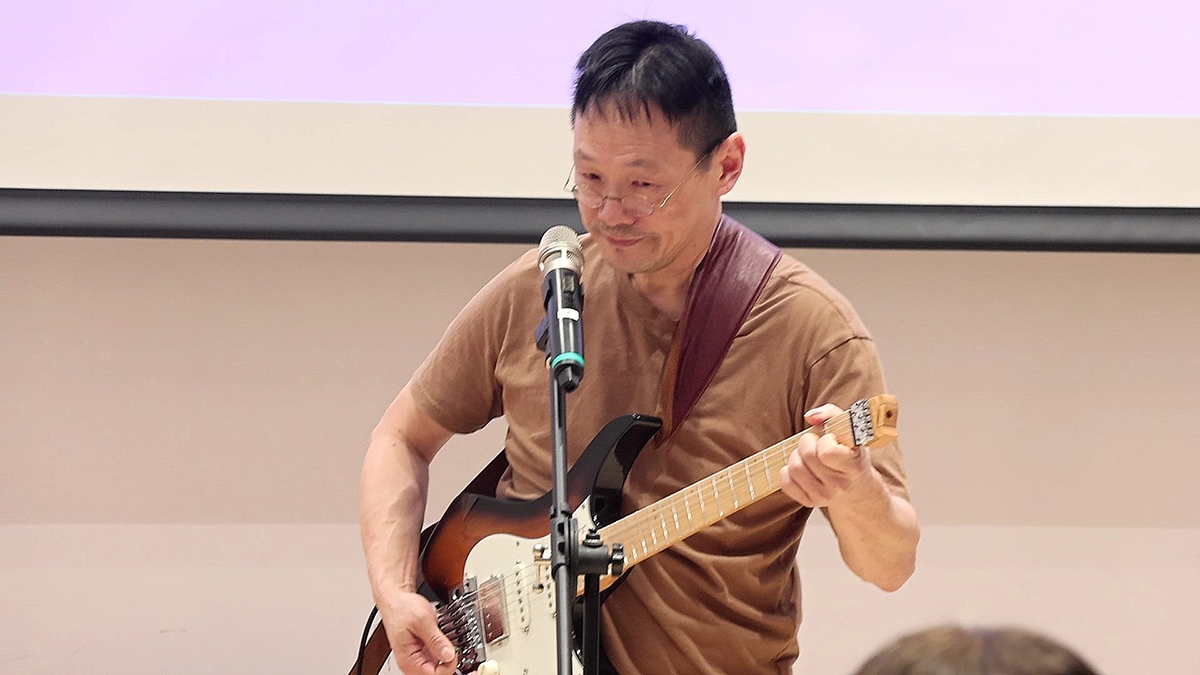象牙海岸出生的鄺老師以法式吉他自彈自唱揭開序幕。圖:陳聞文 攝