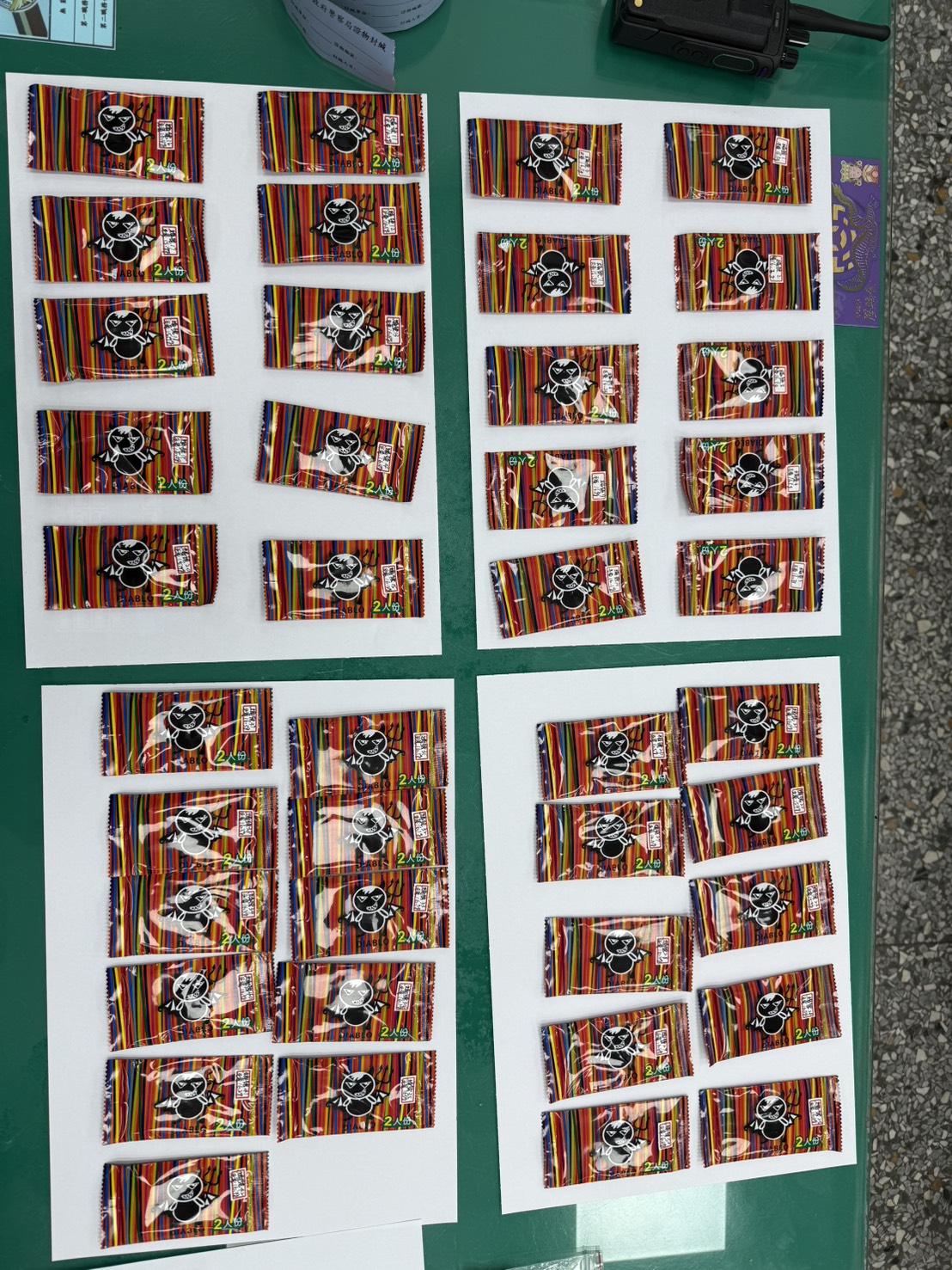 員警盤查時,發現駕駛吳男(90年次)與副駕駛陳男(91年次)神情恍惚、反應遲鈍,疑似有施用毒品情形。警方隨即詢問並檢視車內物品,當場發現駕駛座旁小提袋內藏有毒品。經吳嫌主動交付後,警方查獲愷他命2包(毛重20.3公克)及毒咖啡包(卡西酮)42包(總毛重692.9公克),且該毒品咖啡包居然是市面上十分少見的XL版本,也是俗稱的超大杯,毒品的危害性更加嚴重,遂依法扣案。