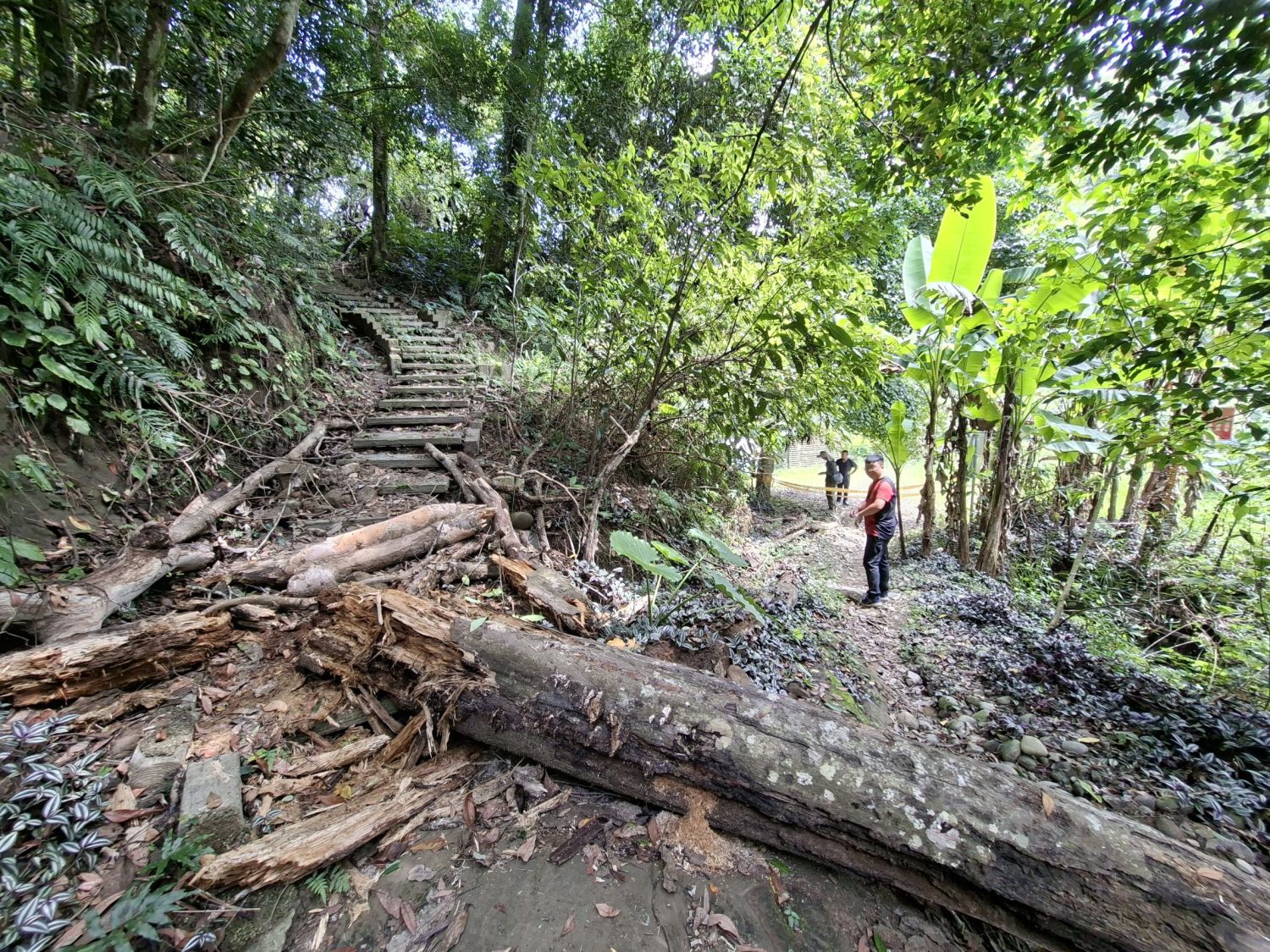 【記者蘇詩鋒/台中報導】七月底多日西南氣流豪雨,造成霧峰山區多處坍方,市議員張芬郁接獲山友反應青桐林生態產業園區多處步道受損,昨(五日)邀集霧峰區公所和農業局會勘,目前北坑溪環狀步道因大量落石崩落,暫時封閉無法通行,要求農業局挹注經費修復,其餘三條步道都已完成修復。