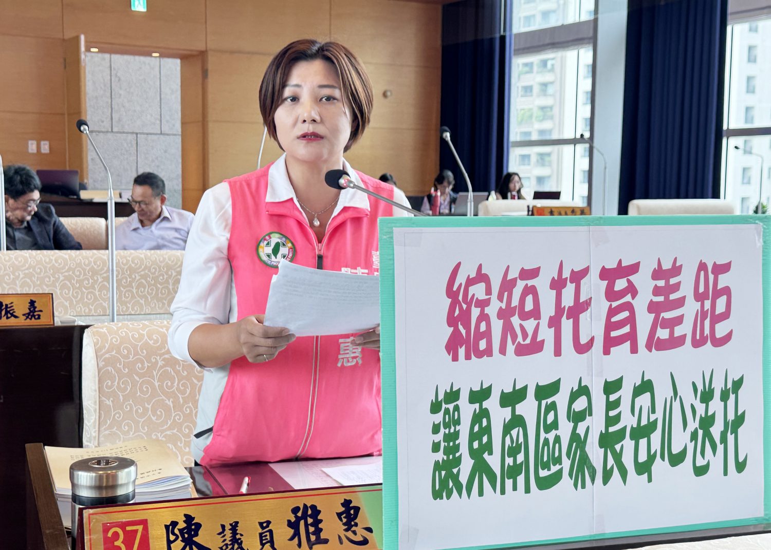 她建議市府應在東南區優先設立「小型衛星型托育據點」,善用社區中心與里辦公處補足資源;同時提高補助、租金或稅賦優惠,吸引私立托嬰中心加入準公共、平抑價格、擴大選擇;並提供交通補助或整合月票方案,減輕跨區送托家長負擔,真正縮小托育落差。