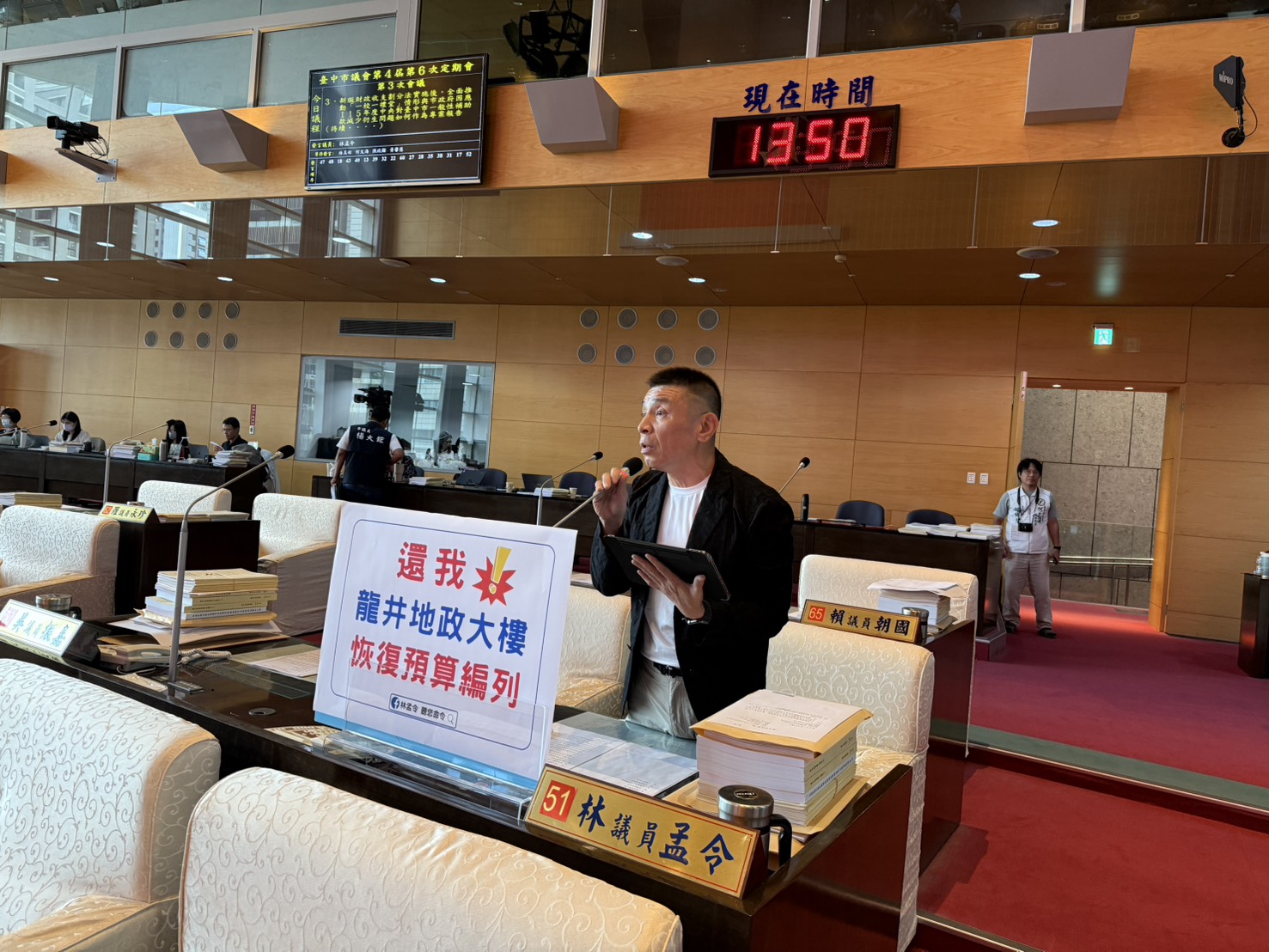 林孟令強調,這種現象顯然應列為優先改善項目,龍井地政大樓預算,早在112年、114年就已編列規劃設計費,但市府在115年度卻將整筆預算刪除,呼籲市府立即恢復龍井地政大樓的預算編列,還給地方一個完整、便利的洽公環境。