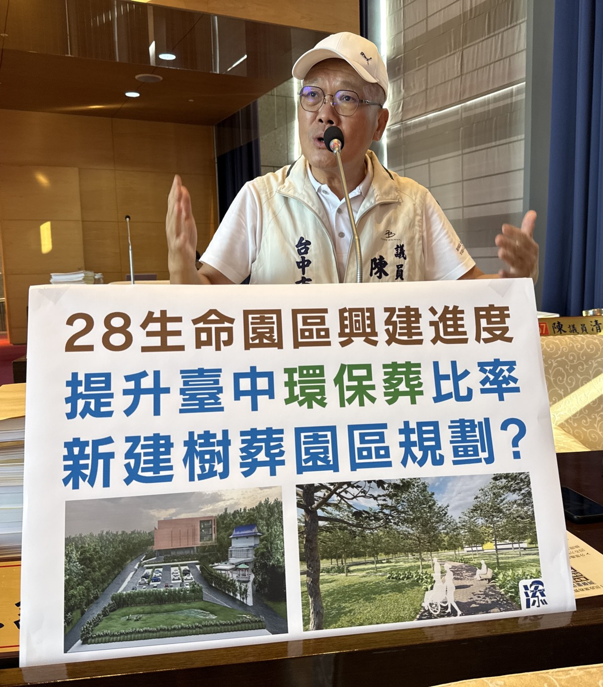 【記者蘇詩鋒/台中報導】現代人對於身後事十分重視,下葬方式也傾向環保葬辦理,臺中市目前正辦理將老舊公墓轉型為納骨塔工程,市議員陳成添詢問北屯28生命紀念園區的工程進度為何。 陳成添表示,現在臺中市人口已突破280萬大關,若依照傳統公墓下葬方式辦理,未來土地恐不敷使用,加上環保葬意識興起,因此市府懷著虔誠的心,陸續將老舊公墓轉型為納骨塔,並興建多處生命紀念園區,讓家屬有一處溫暖靜謐、祥和舒適的園區可以緬懷逝者。