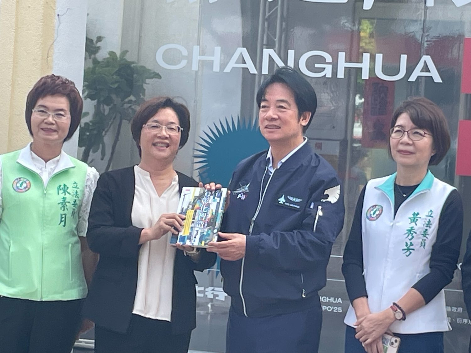 賴總統指出,特別感謝彰化王惠美縣長跟縣府團隊努力承擔、用心擘劃,也感謝經濟部龔明鑫部長、產發署邱求慧署長,還有行政院部會的大力支持,也要感謝張基義院長、總策展人及所有參展團隊,非常謝謝。