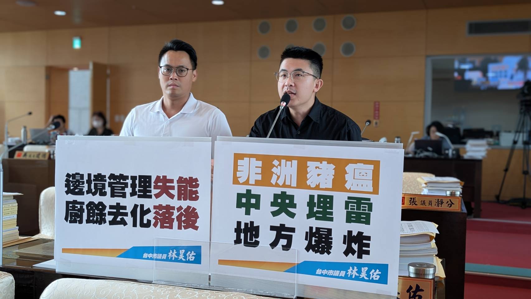 【記者蘇詩鋒/台中報導】台中市議會今日質詢聚焦於中央政策執行與地方配套不足問題。林昊佑議員和楊大鋐議員在會中嚴正指出,中央自2021年禁止未經處理廚餘直接餵養後,將廚餘養殖審核權限甩鍋地方,且未見完整配套措施,對於廚餘蒸煮是否確實給予明確指引亦無罰則,且蒸煮也並非百分之百能夠殺死病毒,設施補助與稽查能量明顯不足,強調「台中不是破口,邊境才是破口,廚餘才是破口」。