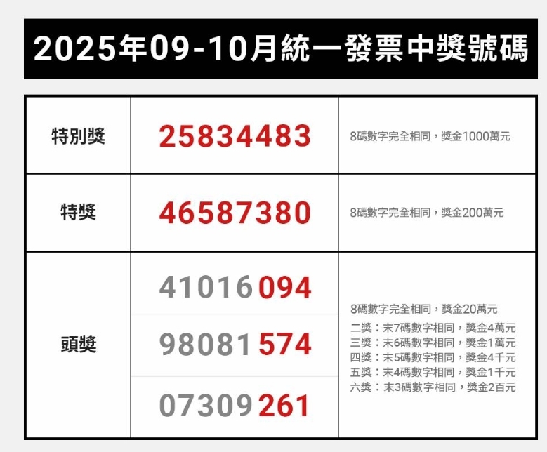 114年09~10月份開出統一發票中獎號碼 by caws 2025-11-25 21:43 2025-11-25 21:43 60 你可能也喜歡 「長照即時通APP」真的方便好用嗎? 亞大、矽品精密簽訂合作備忘錄,培育中部半導體封測人才 老婦被騙走6帳戶 新光銀行察覺有異報警 保住866萬 市議員李天生建議開放「都會型民宿」提供遊客多元化選擇相關新聞 2026年元旦欣開始 何... 2026-01-01 14:12 元旦千人健走 鄉親搞怪... 2026-01-01 13:55 臺中跨年晚會進行中 中警... 2025-12-31 23:49 2026台中跨年在水湳 ... 2025-12-31 23:46 彰化領航‧全國最大 彰化... 2025-12-31 23:01 活化古蹟帶動地方經濟 和... 2025-12-31 22:57