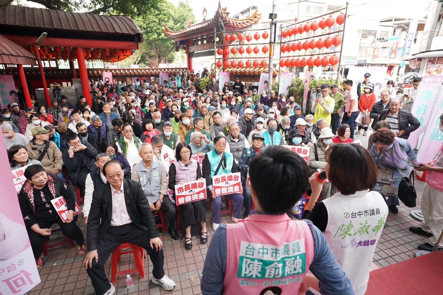 陳俞融提到,盧市府115年總預算歲入1800多億,歷年來賣地收入達1023億,稅收超徵200億,盧秀燕市長口口聲聲說要把市民當家人,但一到要普發現金,就再三推託,堅持不發,忽視市民,明明新竹市、嘉義市財政規模都沒台中大,卻都普發現金,陳俞融強調,盧市府做不到的,就換何欣純來做,現場民眾也高呼,「市長換欣」、「台中創新」、「普發現金」等口號,場面熱烈。
