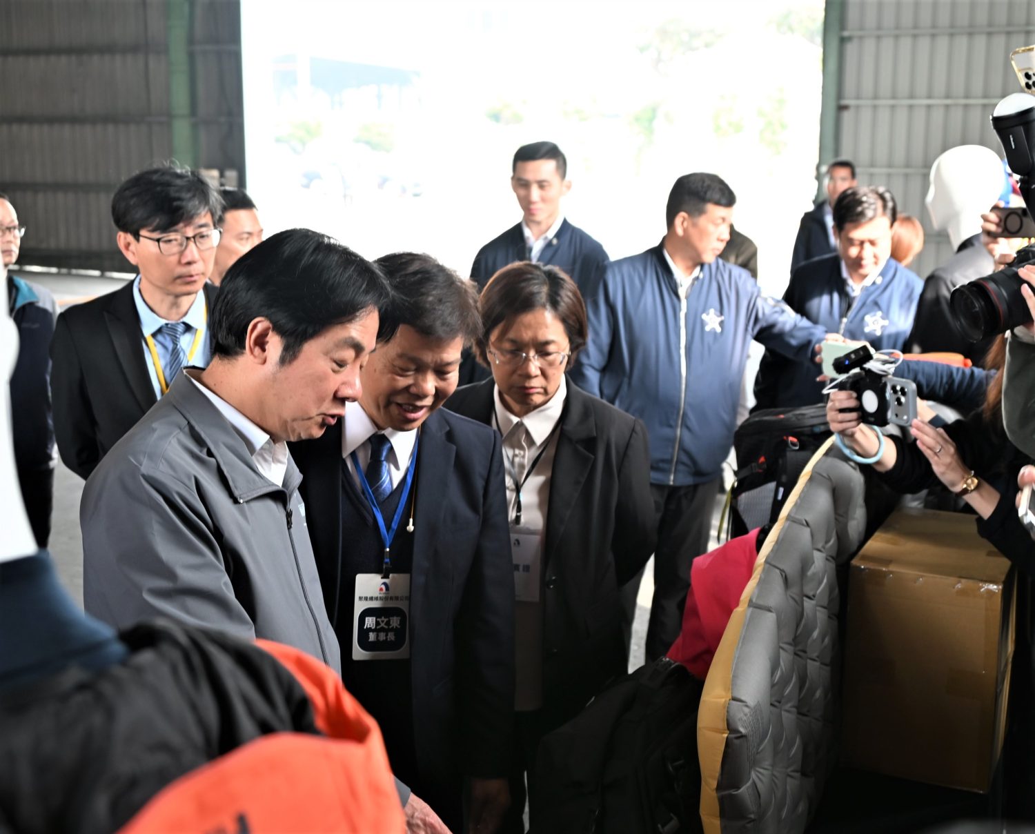 總統賴清德表示,美國總統川普於去(114)年4月2日公布關稅政策,卓院長也隨後在4月4日公布「因應美國關稅我國出口供應鏈支持方案」,預算從原先的880億元,納入各方意見增加到930億元,針對受影響中小企業的紓困金額就高達461億元。中小企業是台灣經濟的骨幹,行政團隊重視並支持中小企業所面臨的困難,會協助大家克服難關。今天由王縣長陪同參訪,紡織產業年產值約3,431億元,每年出口額達67.4億美金,提供13萬2,300個就業機會,對社會穩定非常重要。將持續聽取各企業的想法,用實際行動支持產業界。