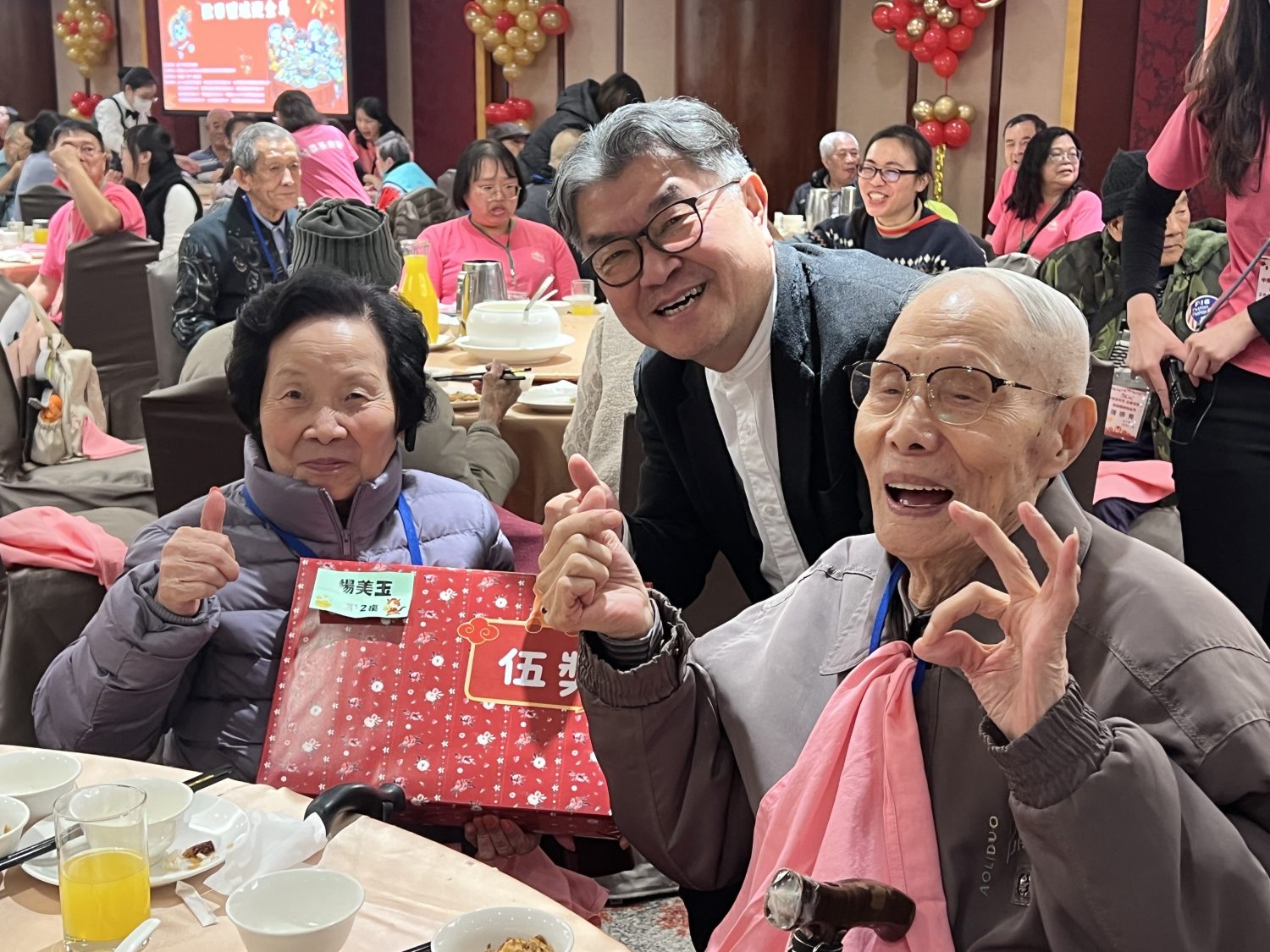 【記者蘇詩鋒/台中報導】關懷獨居弱勢長輩及身心障礙者,台中市議員李中連續第12年發起春節送年菜活動,以「中愛老寶貝 企業送愛心」為主題,號召12家企業共襄盛舉,今(7)日席開18桌提前與獨老圍爐,場面歡樂溫馨。接下來9天年假,也會天天提供美味年菜供獨老享用。 農曆春節關懷獨老活動原本只在東區、南區舉辦,一開始僅6家企業參與,近幾年逐步擴大到全市、參與企業增加至12家,4年前並增加舉辦年前圍爐活動,讓沒有家人陪伴的獨居弱勢長者能出門開心用餐。 今天活動由九天民俗技藝團「老仙角站鼓隊」開場表演,穿插波麗士重奏團薩克斯風、台中市醫師夫人聯誼會舞蹈表演、卡拉ok歡唱及摸彩抽獎。甘霖基金會指出,為了方便長輩參加,特別尋找身障設施完善的場地,並準備適合長輩牙口的營養菜單,讓他們吃得盡興且沒負擔。 李中特別感謝企業家朋友的贊助,他說,近年景氣不佳,這些企業家仍持續投入社會關懷,讓獨老們能在年前圍爐,且接下來9天年假天天有志工送年菜給338名獨老享用,讓社會充滿溫馨氛圍。他也感謝志工們平時熱心服務獨老,今天還陪同獨老們出門同歡,大家宛如家人般提前開心過年。 參加活動的包括高齡101歲馬爺爺、96歲楊奶奶等共50名獨居弱勢長者、身心障礙者。其中78歲、患有小兒麻痺及多種慢性病的劉爺爺,兒子因先天疾病頻繁住院,很少外出的他在圍爐共餐時感受久違的熱鬧與關懷,也展露笑顏。 包括市議員李中、甘霖基金會執行長林錦雪、社會局副局長廖宗侯、吳六合建築師事務所建築師吳六合、時詣廣告總經理朱昌碩、世界鴻廣告董事長林傳傑、里歐實業總經理謝麟兒、萬群地產總經理謝坤成、櫻花建設總經理陳世英、鴻邑建設董事長唐廷照、豐城建設董事長吳鴻進、富華教育基金會董事長許允柔、和瑞建設副總經理李瑞文、沅京建設總經理夏稟鈞、嘉磐建設董事長魏嘉銘等也派員到場陪獨老同歡。