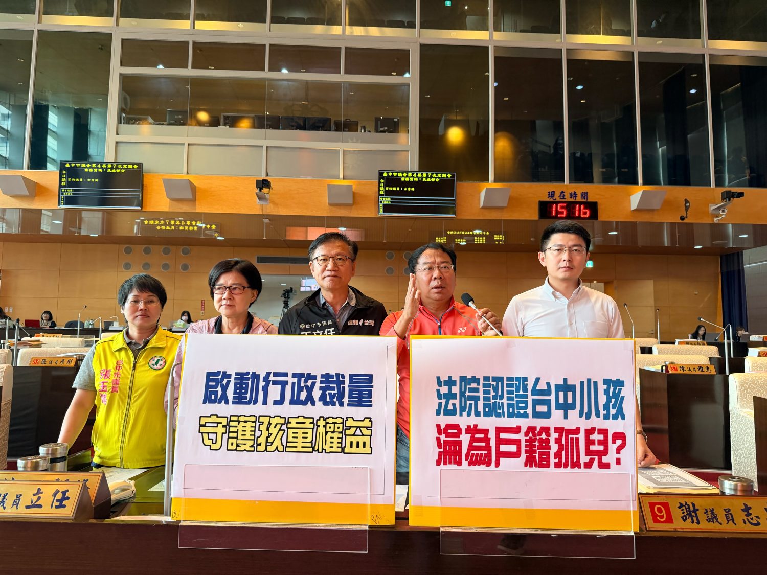 【記者蘇詩鋒/台中報導】台中市議會今(9)日民政業務質詢,市議員謝志忠、王立任、張玉嬿、黃守達及張芬郁聯合指出,某外籍母親111年於台中生下男嬰,四天後經DNA鑑定確認生父為台中市民,家屬為小孩申請戶籍登記時,因其母在其國家仍有婚姻關係致無法完成戶籍登記,爾後,其母立即採取法律行動,於母國經法院判決離婚,在台正式完成結婚登記,並為其子提起否認之訴,113年取得法院判決確定,但因行政程序,判決確定後17個月,孩童還是無法入籍。 謝志忠議員說,這是經過台中地方法院認證的台中小孩!三年前原本阿嬤帶著歡喜抱孫的心情,卻因為沒有戶籍,不但就醫不能享有健保,必須自費,也無法進入托嬰中心,眼見著九月幼兒園即將開學,也無法順利報名,他質疑孩子的權益誰來守護?強烈要求民政局,儘速啟動行政裁量,積極研議可行作法,協助孩童儘速入籍取得基本身分保障,避免其受教權與成長發展權益持續受損。 王立任議員表示, 所有包含DNA鑑定報告證據與法院判決,皆指明該名孩童為臺灣孩子的狀況下,質疑為何市府無法使用行政裁量權,讓孩子能夠登記戶口導致社會福利權益的一再延宕。而黃國榮副市長亦同意王立任觀點,應使用行政裁量權讓孩子先登記戶籍,如若進而有其他異議再研議處理,鄭重以讓臺中孩子能享有權益為最佳優先。 台中市議員謝志忠、王立任、張玉嬿、黃守達、張芬郁強調,在事證明確、法院判決已確定的情況下,市府更應展現積極作為,儘速啟動行政裁量機制,協助孩童完成戶籍登記,確保其基本身分與應有權益,讓孩子得以安心成長。