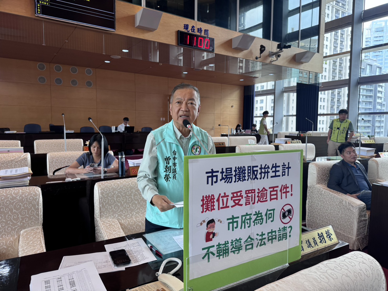 【記者蘇詩鋒/台中報導】台中市議會15日進行財政經濟業務質詢,市議員曾朝榮指出,近期接獲大量攤商陳情,反映因未能在期限內完成攤販集中區合法申請,長期遭檢舉開罰,陷入「違規—檢舉—裁罰」循環,生計壓力沉重。他要求經發局儘速重新開放攤販集中區合法化輔導申請,協助攤商納入制度,避免基層持續受罰卻無解方。 曾朝榮表示,服務處案件中,約四至五成與攤商遭開單有關,顯示問題已相當普遍。台中自民國105年開放申請、108年截止後未再重啟,導致部分攤商因未及申請或不熟程序,長期處於違規狀態,許多攤商抱怨,罰單接連不斷,收入卻未增加,經營壓力日益沉重。 曾朝榮質疑經發局遲未開放申請的原因,並詢問副市長黃國榮是否掌握攤販遭開罰頻率與實際負擔,但未獲具體回應,顯示市府掌握仍不足。