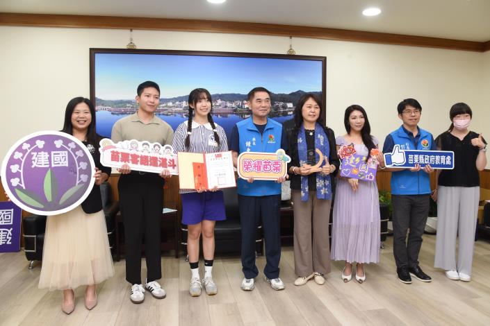 大同國小校長謝美桃深耕教育、致力打造客語生活學校,榮獲教育部「推廣本土語言傑出貢獻獎」,建國國中學生朱映潼則勇於參與公共事務並對重大議題表達獨到見解,入選「第8屆青少年諮詢會」成為全國唯一的國中代表,兩人分別展現母語教育與學生公共參與的雄厚潛力與豐碩成果,也為苗栗之光再添兩筆榮耀。