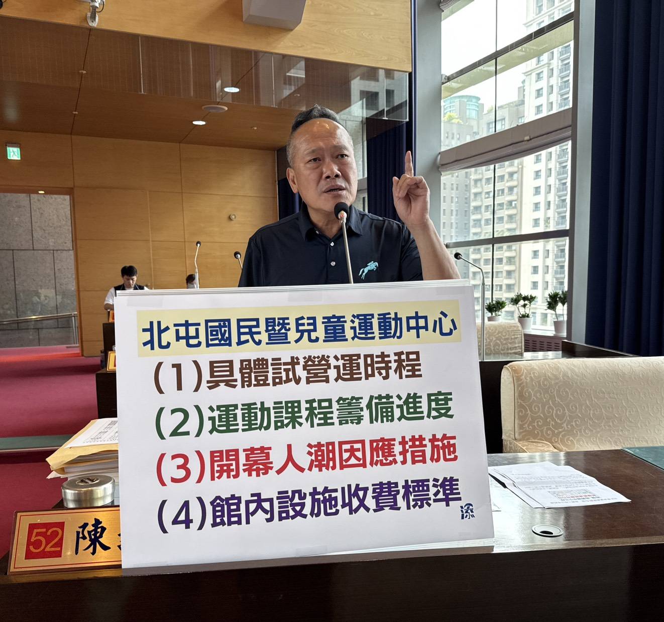 【記者蘇詩鋒/台中報導】北屯區第一座國民暨兒童運動中心預計今年啟用,讓北屯市民十分期盼,對於運動中心的試營運時間、館內設施、收費標準都十分關心,市議員陳成添今日於議會上代表北屯市民詢問北屯國民暨兒童運動中心籌備進度。