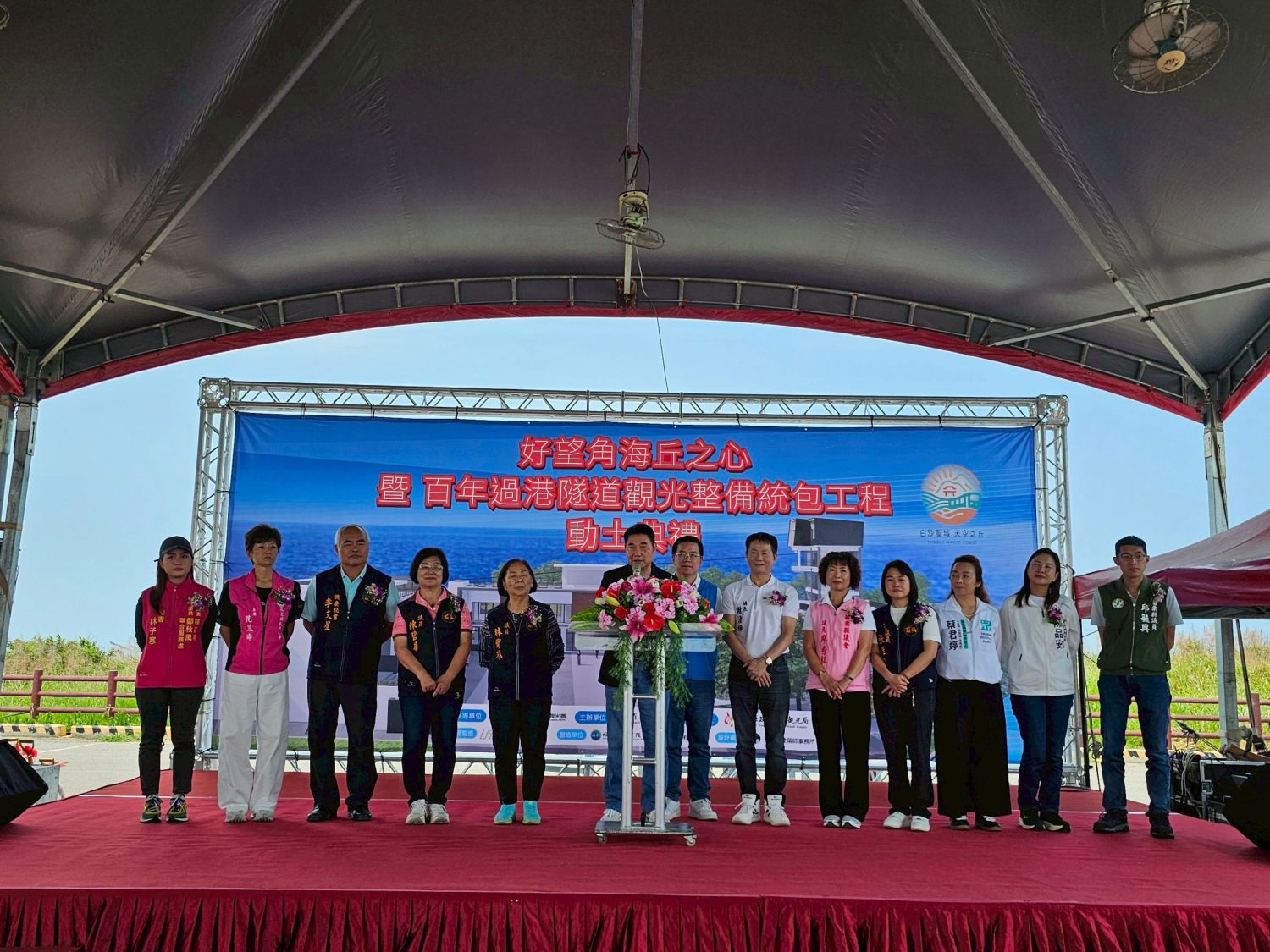 苗栗縣政府積極推動海線觀光發展,於今(21)日上午10時30分在後龍鎮好望角風景區,隆重舉行「好望角海丘之心暨百年過港隧道觀光整備統包工程」開工動土典禮。此工程為「白沙屯至好望角濱海重要廊帶整體規劃計畫-白沙聖域.天空之丘」重點項目,總投入經費達2.6億元,預期將整合海線觀光資源,打造兼具生態、歷史、人文與能源教育的全新觀光廊帶。