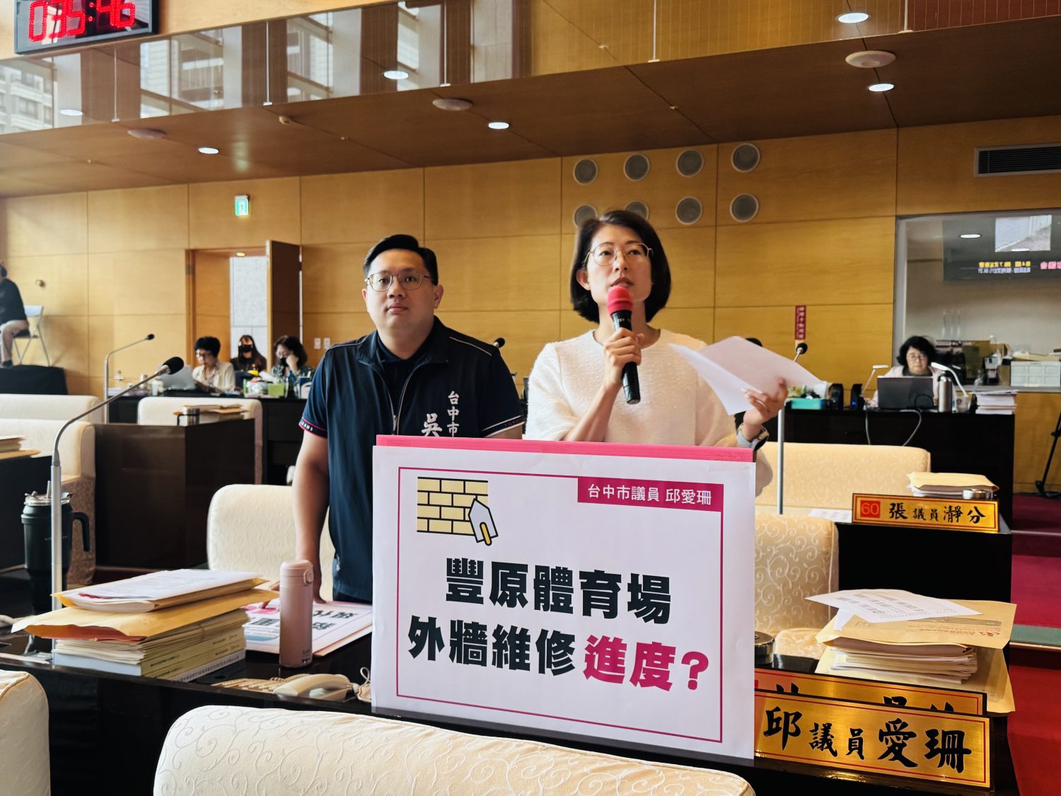 【記者蘇詩鋒/台中報導】台中市議員邱愛珊今(21)日於議會質詢時指出,位於豐原國中與體育場周邊的人行空間,存在嚴重公共安全隱憂。邱愛珊表示,接獲民眾陳情,現場圍牆已出現多處橫向與縱向裂縫,甚至有立柱斷裂與位移情形,每日均有大量學生與運動民眾通行,形同置身風險之中。 邱愛珊強調,該處並非偏遠地區,而是人流密集的通學與運動路線,一旦發生圍牆倒塌,恐造成嚴重傷亡事故,責任歸屬更不應模糊。對此,邱愛珊要求教育局與運動局應儘速釐清管理權責,避免互相推諉,延誤處理時機。 邱愛珊更進一步要求運動局說明,目前是否已編列相關修繕預算,以及最近一次安全檢測的時間與結果。對於已表示「正在規劃」的案件,也要求提出明確的開工與完工期程,讓地方民眾安心。 運動局局長游志祥表示,已接獲豐原國中反映相關情形,並於今年3月委託工程顧問公司進行現場勘查與結構評估,研議後續修復補強方式。目前已將該案納入整體計畫,預計明年度爭取相關經費辦理發包作業;若進度順利,期望於年底完成發包,並在開工後兩個月內完成外牆修復與補強工程。 邱愛珊強調,公共設施安全沒有灰色地帶,尤其是涉及學童通行的環境,更應以最高標準檢視。市府應以積極態度面對問題,儘速完成修繕作業,確保市民基本安全權益。