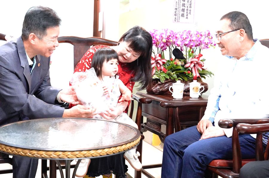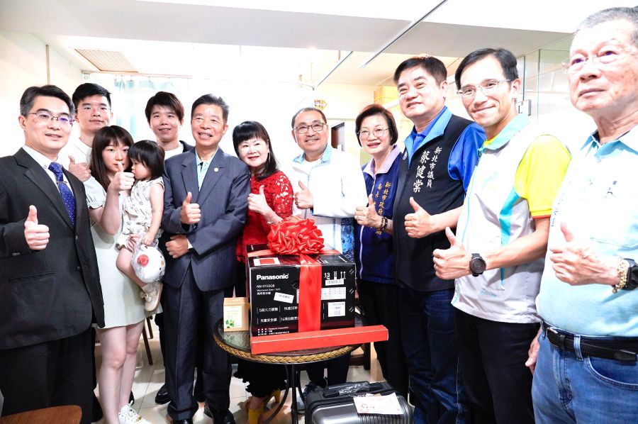 侯友宜市長由社會局長李美珍、新莊區長朱思戎、全安里長蔡明祥等人陪同訪視,洪醫師好友市議員蔡健棠及新北市中醫師公會現任理事長施丞修和新莊區後備憲兵荷松協會理事長柯宗苗等人亦蒞臨道賀。由於花醫師初為阿嬤,且與孫女感情融洽,孫女學說話第一句不是叫爸、媽,而是叫「阿嬤」,因此侯友宜特別致贈「熊果」玩偶,祝她平安尚大漢。另致贈燒烤微波爐,希望花醫師在守護病患之餘,也能以美味溫暖家人。