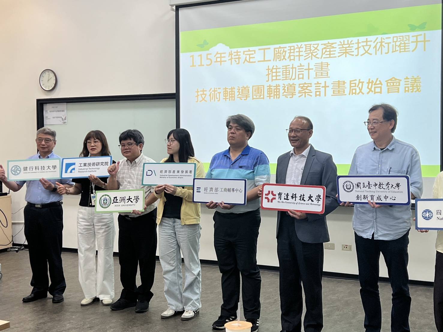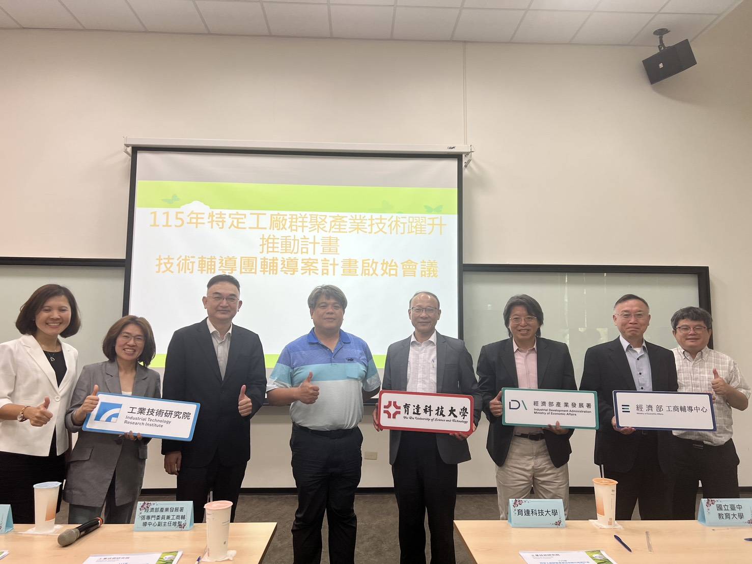 本計畫由育達科技大學團隊龍清勇副校長、姜玲鳳、葉律佐、李政宗、林彥岑、陳瑞芬、朱俊夫及陳博舜等跨領域教師組成專業團隊,團隊成員均具備AI領域、低碳化領域的專業之能與證照。115年4月22日於經濟部中區創新園區慎重舉辦計畫啟動會議,與經濟部、工研院及各輔導單位交流執行策略。