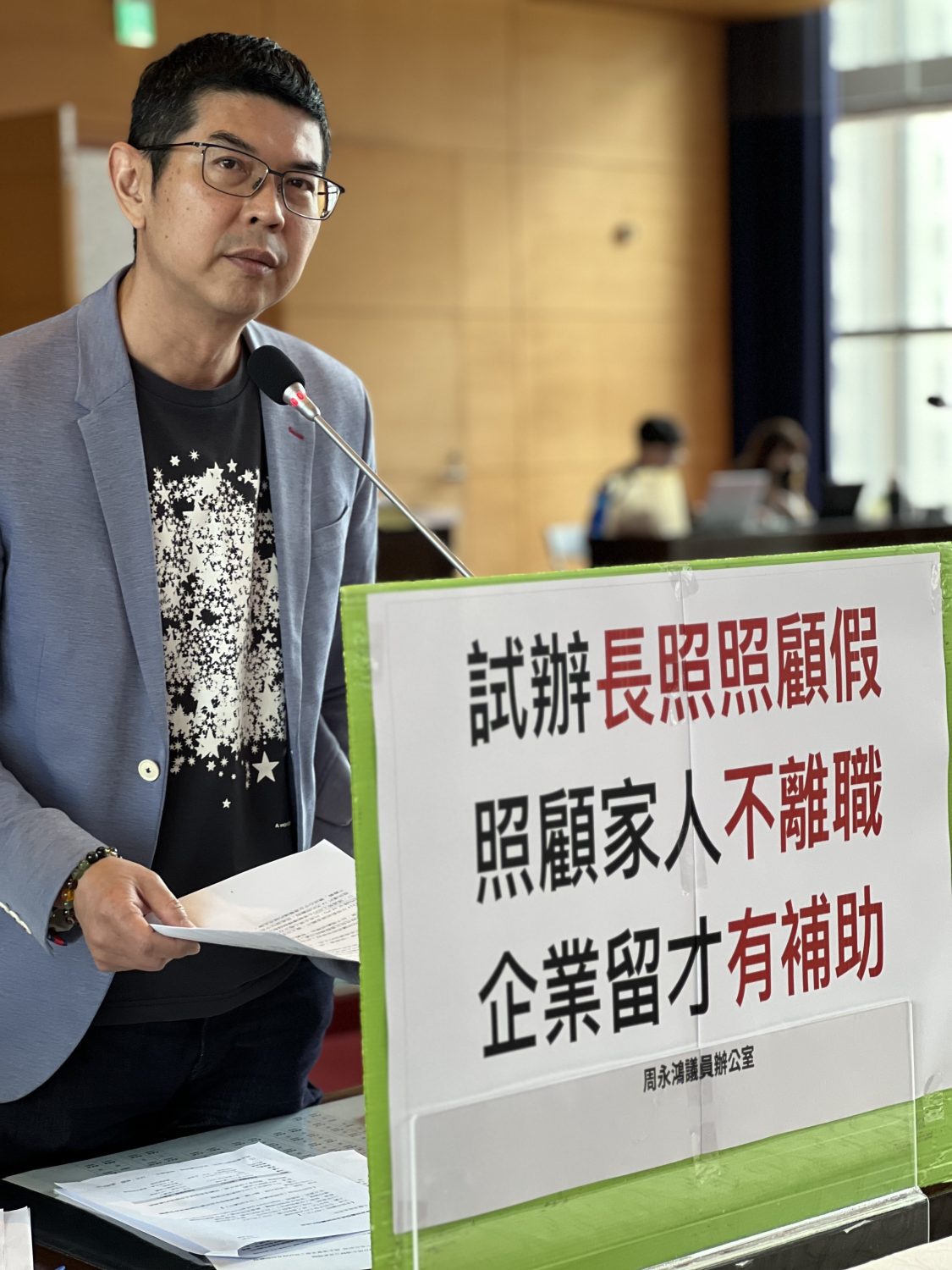 【記者蘇詩鋒/台中報導】民進黨台中市議會黨團總召周永鴻於市議會質詢中,針對在職照顧者困境提出質詢,要求勞工局規劃「台中市企業試辦長照照顧假補助方案」,讓台中走在中央前面,成為全國第一個試辦長照照顧假的城市。 周永鴻指出,現行家庭照顧假每年僅7天、併入事假14天且無薪,115年新制雖開放按小時請假,但對於家人突然失能、需要銜接長照服務的照顧者而言,14天的彈性空間遠遠不夠,許多人在最混亂的過渡期被迫離職。他引用勞動部114年調查指出,超過七成六的受僱者期待長照安排假或長期照顧留職停薪,超過六成勞工曾因照顧壓力考慮離職,照顧離職已成為嚴重的勞動力流失問題。 周永鴻表示,台中市65歲以上人口超過50萬,長照喘息服務使用人數從112年的21,820人成長至114年的25,750人,三年增加近4,000人,在職照顧者的規模不容忽視。民間團體與立委已積極倡議30天六成薪的長照安排假,但中央仍在研議階段,台中作為人口第二大直轄市,有條件也有動機率先行動。 周永鴻要求勞工局在一個月內提出初步方案,具體包含:補助願意提供超過14天且部分有薪長照照顧假的企業、參考中央育嬰留停雇主獎勵金模式給予定額獎勵金,並搭配現有友善中高齡企業認證計畫推動,將提供長照照顧假列為認證加分項目。他強調,勞動部調查顯示雇主反對長照假的比例已從110年的67%降至114年的44.3%,企業心態正在轉變,台中應抓住這個窗口,為在職照顧者打造更友善的環境。