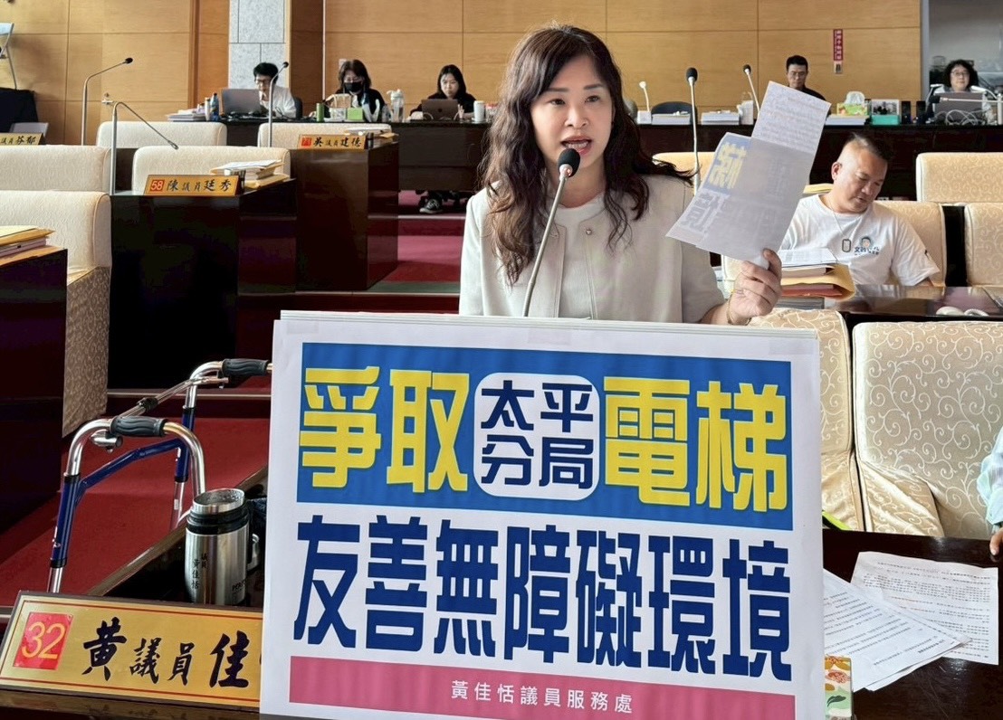 【記者蘇詩鋒/台中報導】台中市議會今(27)日進行警消環衛業務質詢,市議員黃佳恬指出,太平分局轄區人口已突破20萬人,肩負治安與交通重責,同時也是地方重要的公共服務據點。然而,目前整棟建築尚未設置無障礙電梯,對年長者、身心障礙者及行動不便民眾,甚至參與訓練的民防義警義交等協勤人員而言,明顯不便與潛在風險。 太平分局為地上4層樓建築,1、2樓為民眾洽公空間,3樓警員辦公空間,4樓則是可容納約200人的禮堂,提供辦理社區治安座談會,及義警、義交、守望相助隊及警察志工等協勤民力的重要教育訓練場所。以去年使用約30場次,每年使用人數約超過4,500人,使用頻率相當高。 黃佳恬議員表示,太平分局不只是警察辦公場所,更是連結警民的重要場域。尤其4樓禮堂使用頻繁,協勤人員需長期上下樓,安全與便利性不容忽視。隨著高齡化社會來臨及無障礙環境意識提升,公共機關更應率先落實友善空間設計。 黃議員要求,警察局儘速辦理太平分局整體空間盤點與無障礙電梯設置評估,積極編列預算推動改善,並同步檢討出入口坡道、導引標示與室內動線,全面提升分局無障礙友善環境。