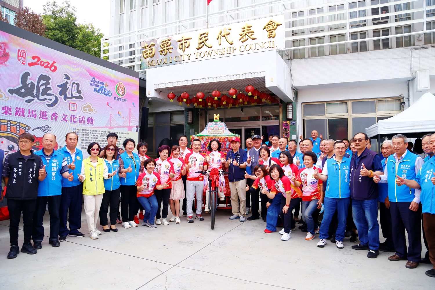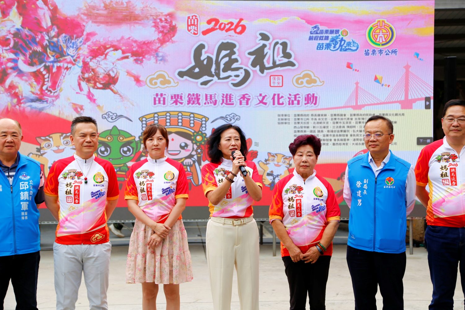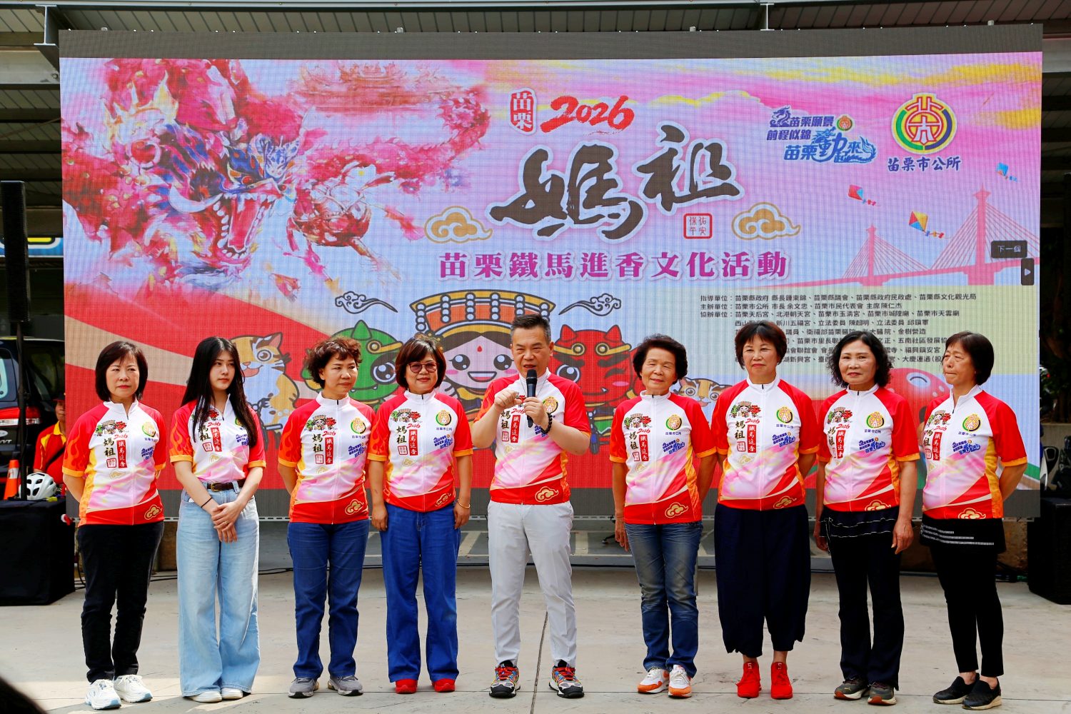 苗栗市年度最具特色的宗教與運動結合的重要盛事「苗栗鐵馬進香文化活動」,將於115年5月15日至5月17日盛大登場。今年活動以「延續信仰、騎出文化」為主軸,透過創新活動設計與參與形式,讓傳統進香文化以嶄新樣貌再現。今(27)日在公所前好客廣場舉辦記者會,在苗栗縣副縣長邱俐俐、苗栗市長余文忠、苗栗市民代表會主席陳仁杰以及天后宮主委林岳爐暨全體理監事與北港朝天宮副董事長蘇健榮等來賓,邀請全台車友與民眾一同見證鐵馬與信仰交織的動人場景。