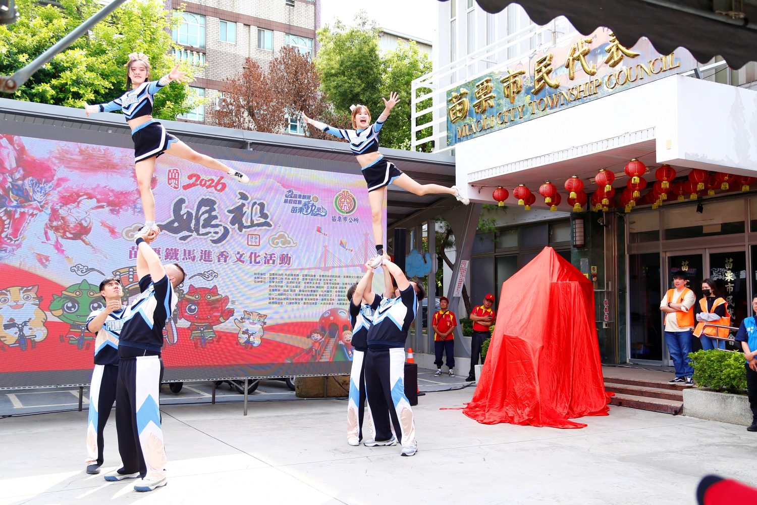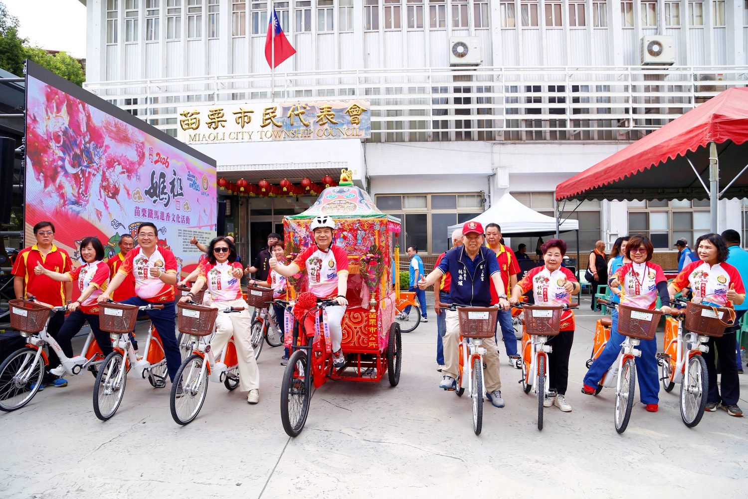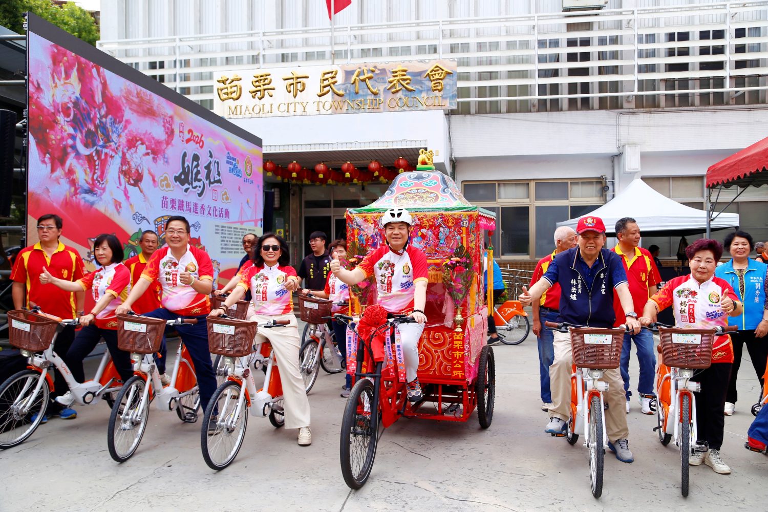 苗栗市年度最具特色的宗教與運動結合的重要盛事「苗栗鐵馬進香文化活動」,將於115年5月15日至5月17日盛大登場。今年活動以「延續信仰、騎出文化」為主軸,透過創新活動設計與參與形式,讓傳統進香文化以嶄新樣貌再現。今(27)日在公所前好客廣場舉辦記者會,在苗栗縣副縣長邱俐俐、苗栗市長余文忠、苗栗市民代表會主席陳仁杰以及天后宮主委林岳爐暨全體理監事與北港朝天宮副董事長蘇健榮等來賓,邀請全台車友與民眾一同見證鐵馬與信仰交織的動人場景。