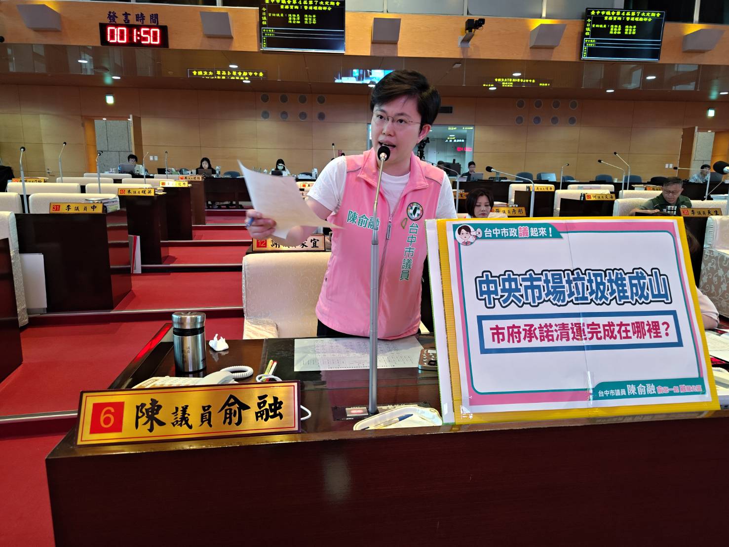 陳俞融表示,中央市場廢棄物沒有清運完成,只有轉移焦點。批評市府若只會把垃圾往後搬、把問題往後拖,這塊北區「價值連城」的土地,只會變成市民眼中的爛攤子。