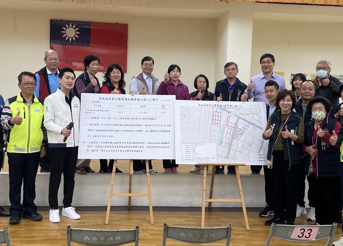 【記者王睿騏/台中報導】為改善自來水管材老舊漏水,市議員黃馨慧、立委廖偉翔召集里長廖阿月、林寅利與相關單位今(6日)舉辦世貿公園周邊汰換自來水管線說明會,自來水公司預計3月辦理開工,將分五個階段施工,工期預計250工作天,完工後將改善福中里、福和里民生用水水質、水壓,提升民眾用水品質。