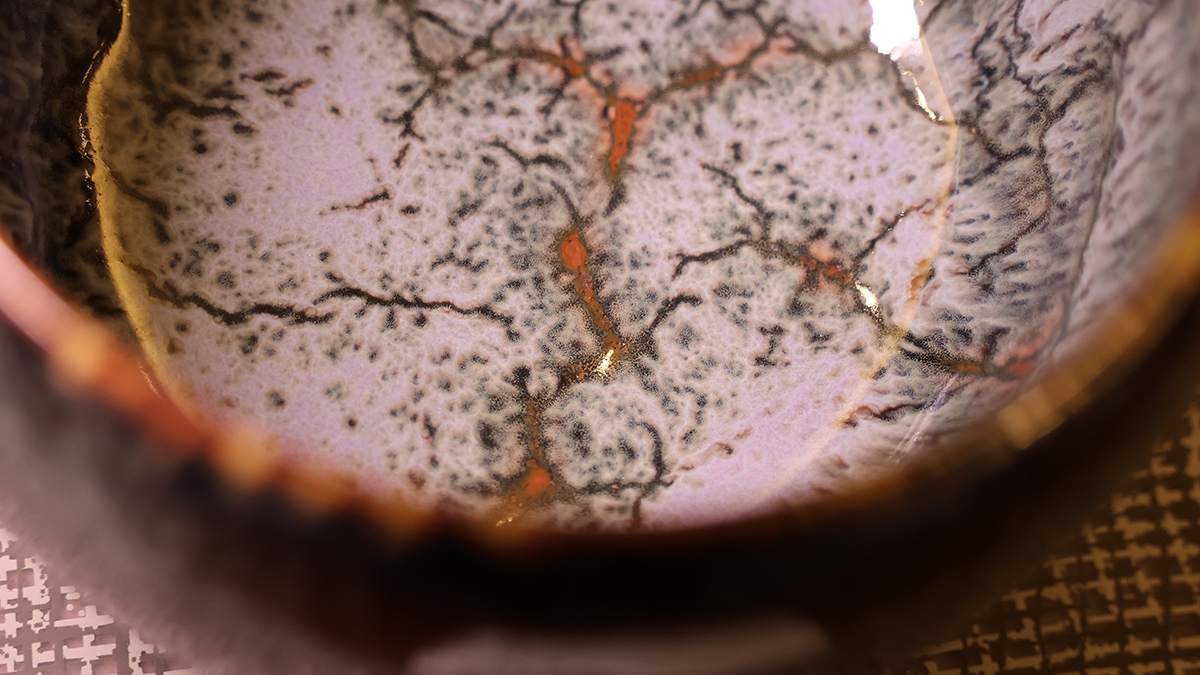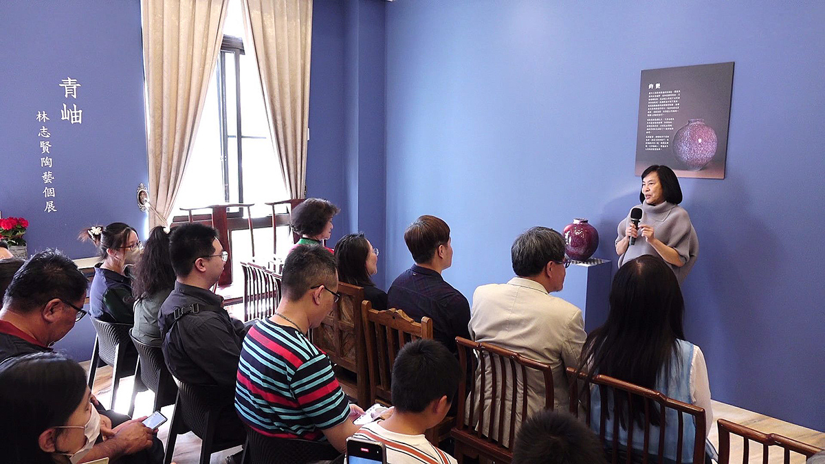 藝術經紀人王譯聖表示,林志賢擁有理工科背景,卻選擇陶藝作為情感與哲思的載體。他師承天目釉大師邵椋揚,早年深入研究傳統釉藥的反應與窯火變化,並在無數次實驗中領悟「釉色即心象」的哲學。五年來,他從基層拉坏、捏塑到釉藥堆疊,不斷調整配方與燒製方式,最終自成一格,開創全新釉色。《青岫》系列正是其突破傳統、開創獨特視覺語彙的代表作。作品以青藍色為基底,釉色交錯層疊,形成「遠觀如潑墨山水,近看有巖脈肌理」的藝術效果。