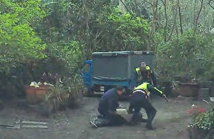 警方隨即通報東勢及苗栗卓蘭地區鄰近派出所支援,展開跨區攔截圍捕行動。警方在和平山區與卓蘭堤防道路展開追緝,最終在苗栗縣卓蘭鎮坪林里產業道路成功圍堵並逮捕犯嫌。