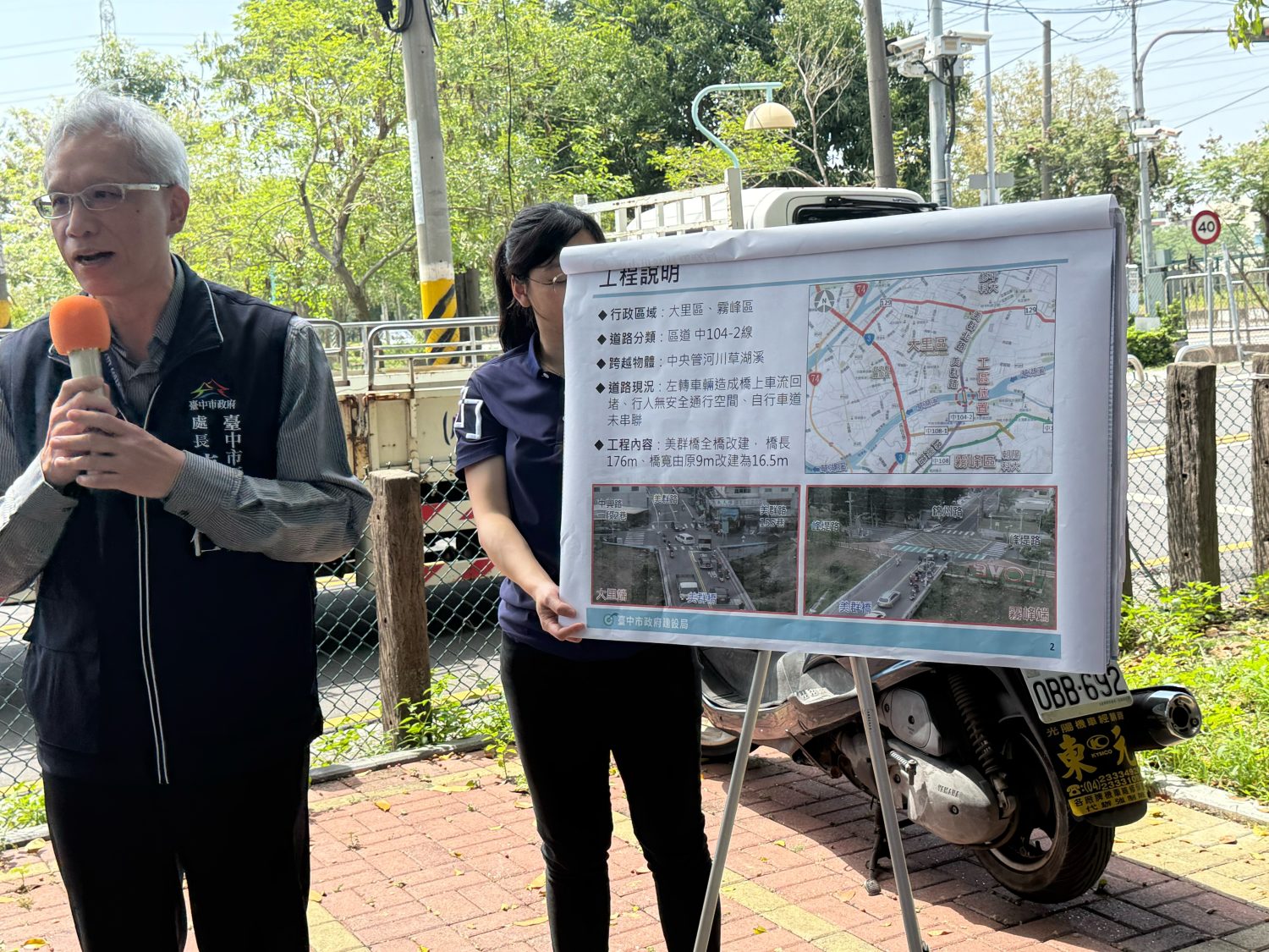 何欣純說,美群橋連接大里及霧峰,水利署基於草湖溪水利安全,先啟動烏溪水系大里溪支流草湖溪治理計畫,確認計畫洪水位下降至橋樑底以下,以排除拓建工程阻礙,再者是美群橋路段原非屬生活圈道路補助範圍內,她邀請內政部現勘於2023年獲生活圈道路編定,未來橋面改建連接大里霧峰兩側的道路寬度不一樣,包含交通標誌、標線規劃設計,這些都要一併納入考量。