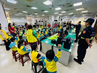 警方今天表示,活動當天員警大哥哥介紹了手銬、警盾、防彈背心等警用裝備,並讓孩子們親自穿戴體驗。孩子們興奮地舉手發問,現場氣氛熱烈,笑聲不斷。
