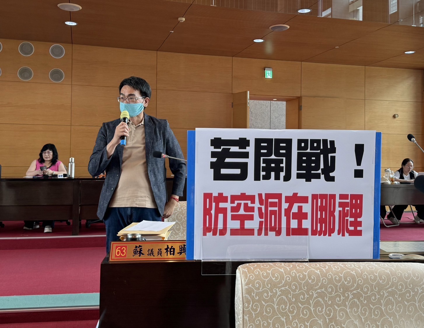 蘇柏興表示,二岸關係緊張,過去的溝通管道都消失了,萬一發生戰事,地方可能要自求多福,做好準備保護市民。台中市防空避難設施有多少?在哪裡?要準備多少安全存糧?這些都要有通盤規劃。