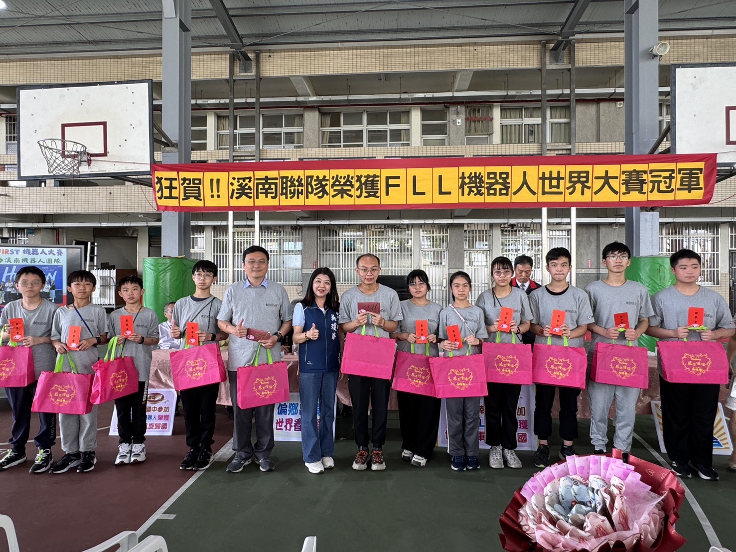 吳瓊華表示操作LEGO機器人在限時內完成15項任務,並設計穩定結構與程式邏輯。隊伍憑藉流暢的程式設計與團隊默契,並在重重強敵挑戰下獲得高分佳績,非常優秀。 今(23)日溪南國中比賽的隊伍光榮歸國,全校師生及家長都在校門口列隊歡迎,吳瓊華親自到校迎接選手們,也特別準備了精美實用的禮物,以及參賽的師生每人頒發獎學金,感謝他們團隊挑戰這一次比賽,勇奪世界冠軍的光榮!