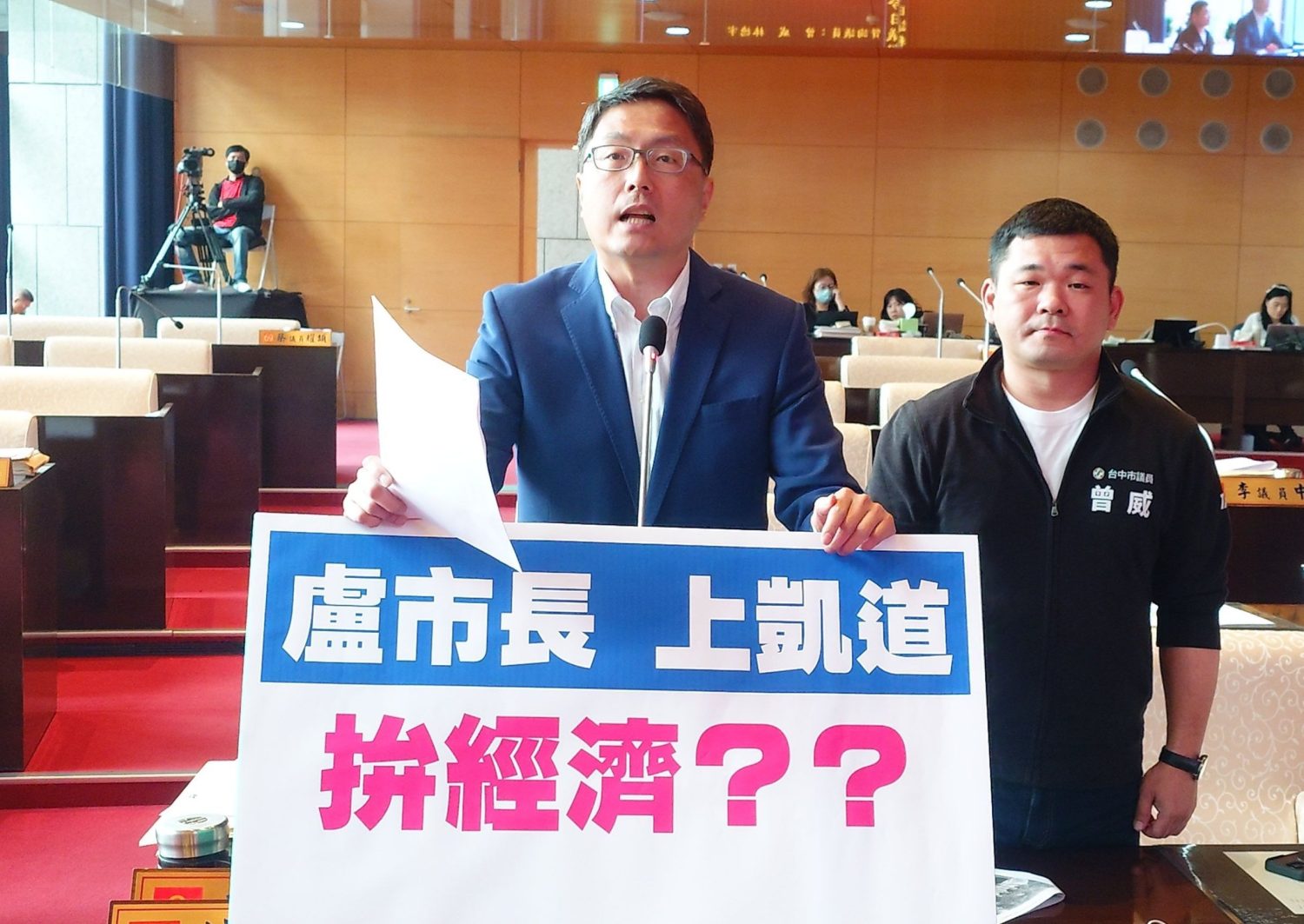 他呼籲盧市長,「拚經濟,不是上凱道」,請盧市長拜託現在的國會多數政黨,藍白政黨如果還認得清,當下經濟困難是要趕快攜手合作,不是在那邊亂,那不是在拚經濟,拚經濟不是去凱道亂。他也要求經發局長要拜託市長發揮他的影響力,全力支持特別預算。