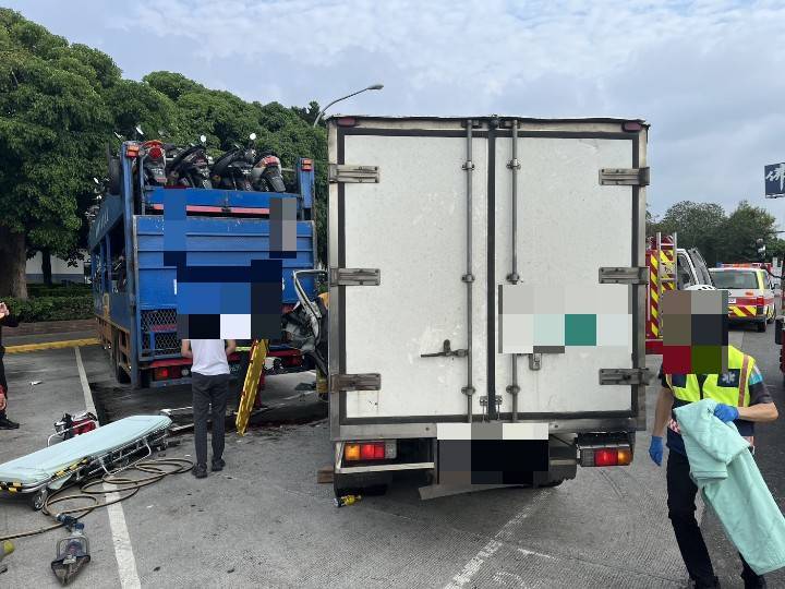 【記者黃文麒/西螺報導】有位蔡姓男子駕駛一輛營小貨進入南向西螺休息服務區停車場内,先擦撞林姓男子自大貨再衝擊撞上停於停車格一位林姓男子所駕的營大貨,蔡男卻夾在車内,經警消到達破壞搶救送醫後已無生命危險。