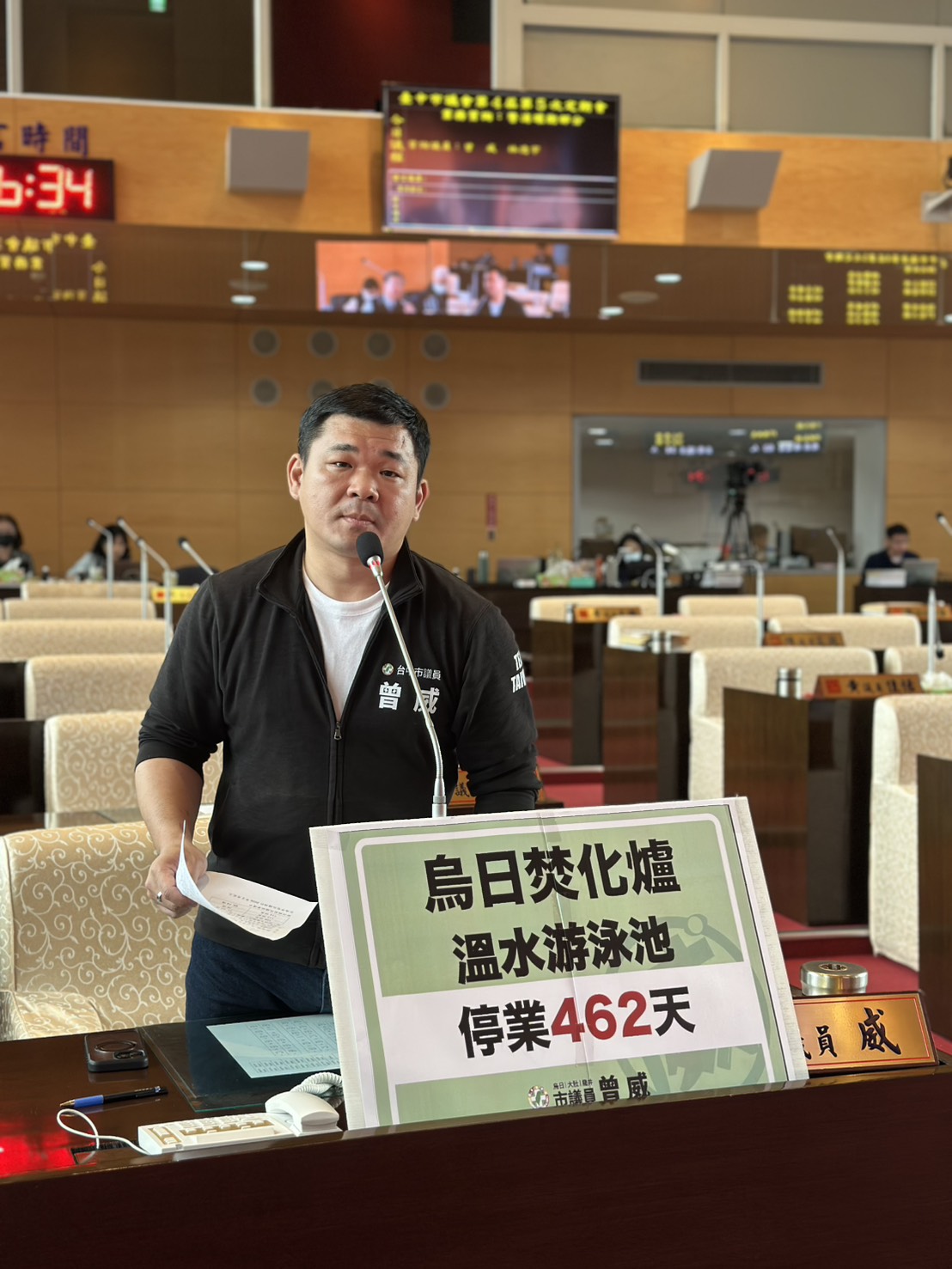 曾威也指出,烏日焚化爐溫水游泳池已經停業462天,烏日焚化爐一直在燒,游泳池遲遲不解決。敬老愛心卡都要研擬開放回饋金游泳池使用,烏日游泳池開放卻遙遙無期。曾威呼籲環保局不要再佔烏日人便宜,儘快解決烏日游泳池的問題並開放使用。