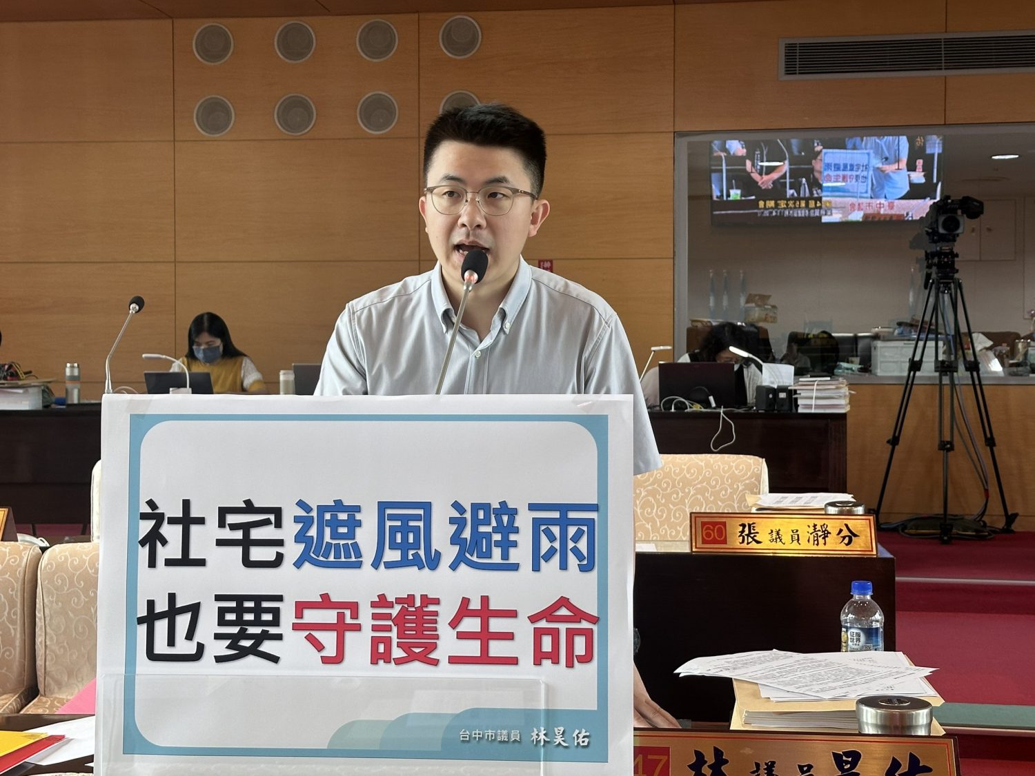 【記者蘇詩鋒台中報導】「智慧城市,不該只在捷運與AI,還應該照進每一位獨居長者的生活裡。」台中市議員林昊佑5月13日在議會質詢中指出,社會住宅內發生的高齡獨居死亡事件,引發社會關注,他呼籲市府以社會住宅為基地,打造高齡友善智慧示範區,結合生命監測與失智防護科技,建立真正人性化的照顧體系。