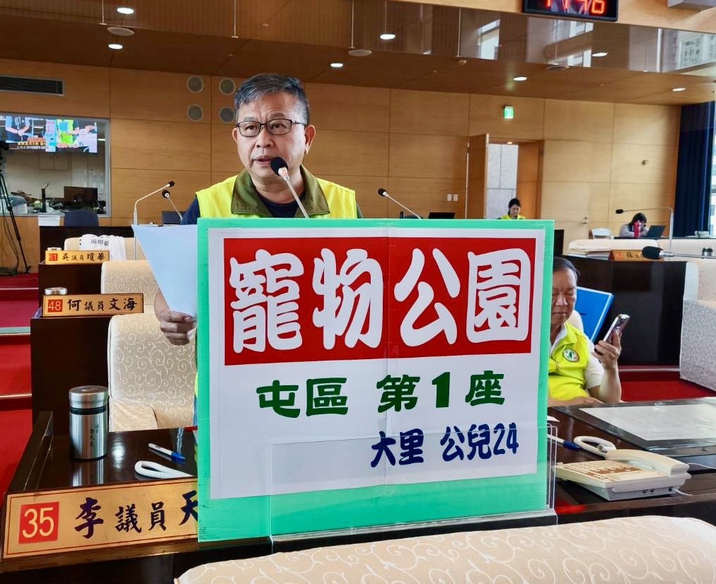 針對議員質詢,建設局長陳大田說明,大里公兒24寵物公園,預計114年度建置完成,將由動物保護處設計規劃,建設局負責興建,經費沒有問題,約在350萬元至400萬元之間,完成後將是屯區第一座寵物公園。