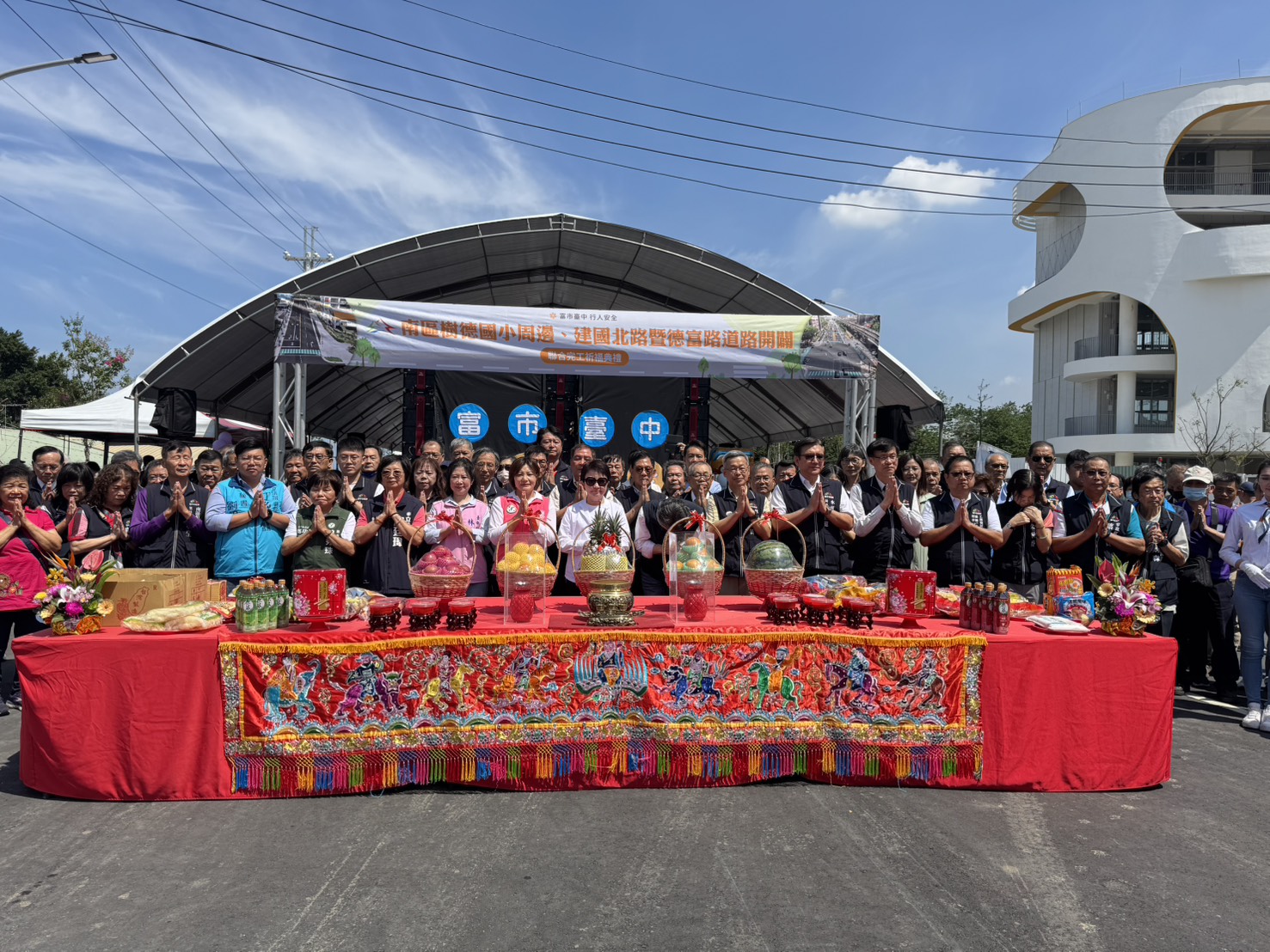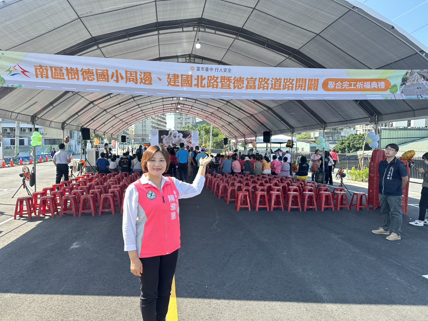 【記者蘇詩鋒台中報導】台中市南區重大交通建設「樹德國小周邊、建國北路暨德富路道路開闢」聯合工程16日上午舉行完工祈福典禮,由市長盧秀燕主持,市議員陳雅惠應邀出席,與地方仕紳、家長及學童一同見證道路通車,氣氛熱烈。