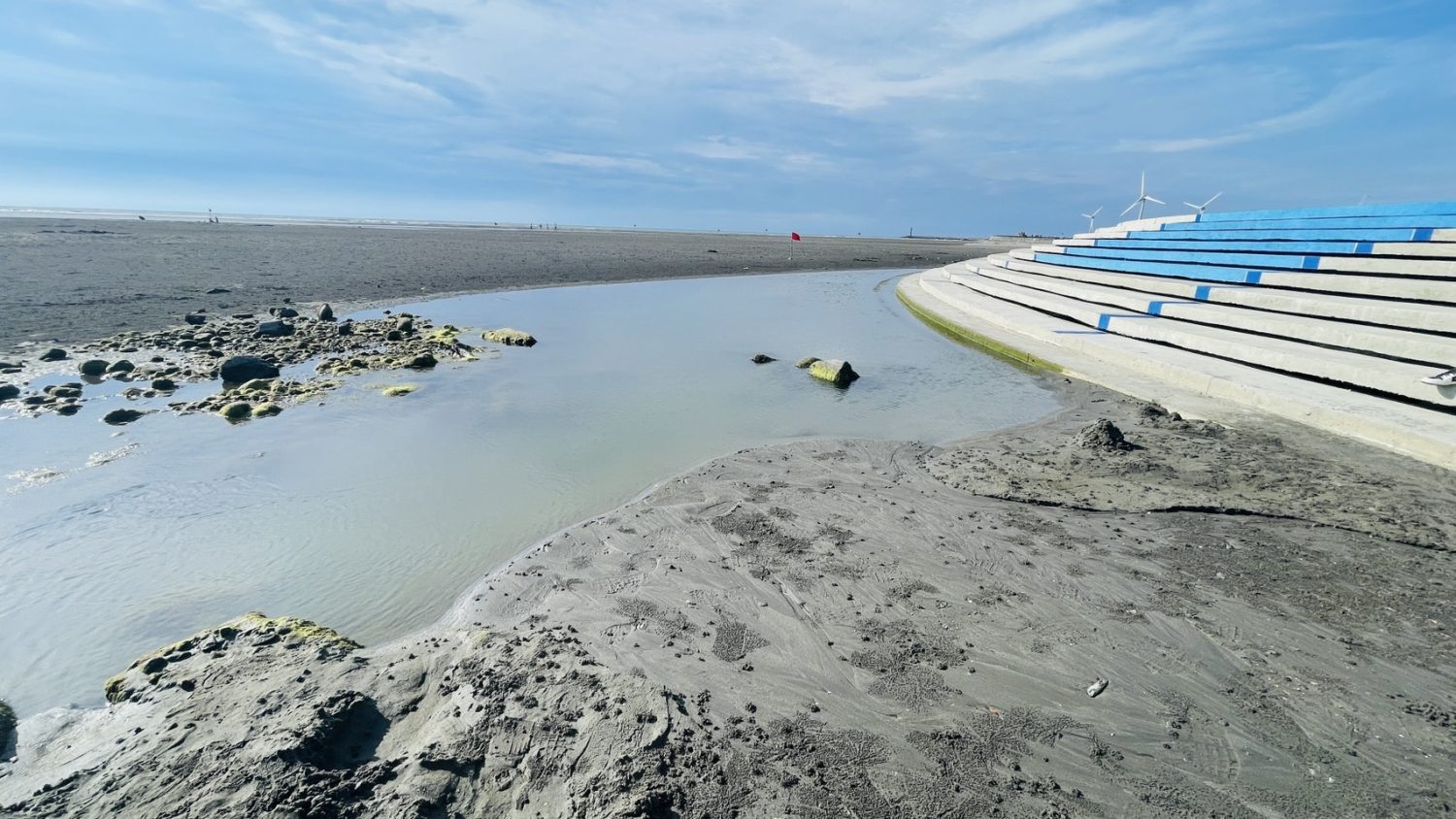 日前王立任議員注意到社群平台「爆料公社」中,有民眾揭露在觀景平台前的積水區中踩到尖銳鐵釘,當場血流不止。貼文中指出,現場海域中藏有大量鐵釘,是施工廠商在板模作業結束後,直接棄置於水中。王立任表示他第一時間就主動聯繫受傷遊客,並於第一時間前往現場勘查,所見情況令人震驚,沙灘上積滿了施工廢棄物,其中包含了許多尖銳廢棄物,部分鐵釘甚至直接裸露於積水之中,稍有不慎便會釀成嚴重傷害,此外我們在平台旁發現了一包包裝滿鐵釘的袋子,且袋子中的鐵釘皆生鏽嚴重。